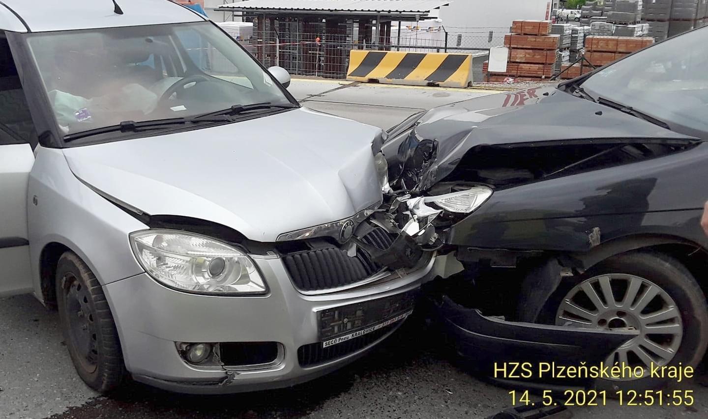 Klatovech k zadnímu střetu dvou vozidel. Záchranáři z místa transportovali