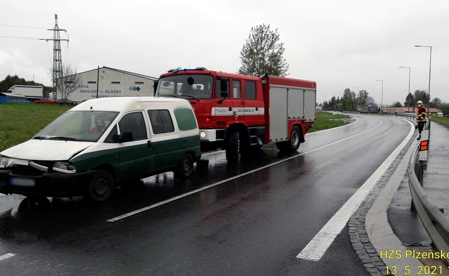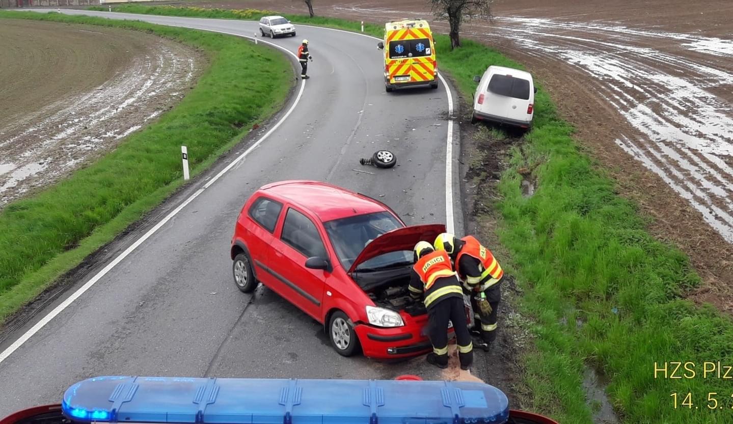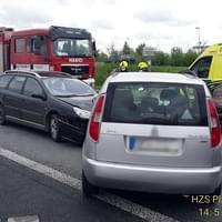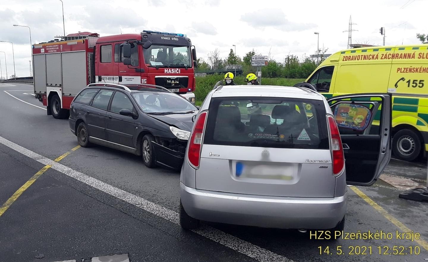 Těsně před polednem došlo také ke střetu dvou osobních vozů na sjezdu 67 z dálnice D5 u Ejpovic. Na místě jsou dvě zraněné dospělé osoby a jedno dítě, zasahují všechny záchranné složky. "Z místa transportujeme ženu narozenou v roce 1981 do Fakultní nemocnice Bory. Další ženu narozenou v roce 1977 a dítě transportujeme na urgentní příjem Fakultní nemocnice Plzeň Lochotín," uvedli záchranáři.