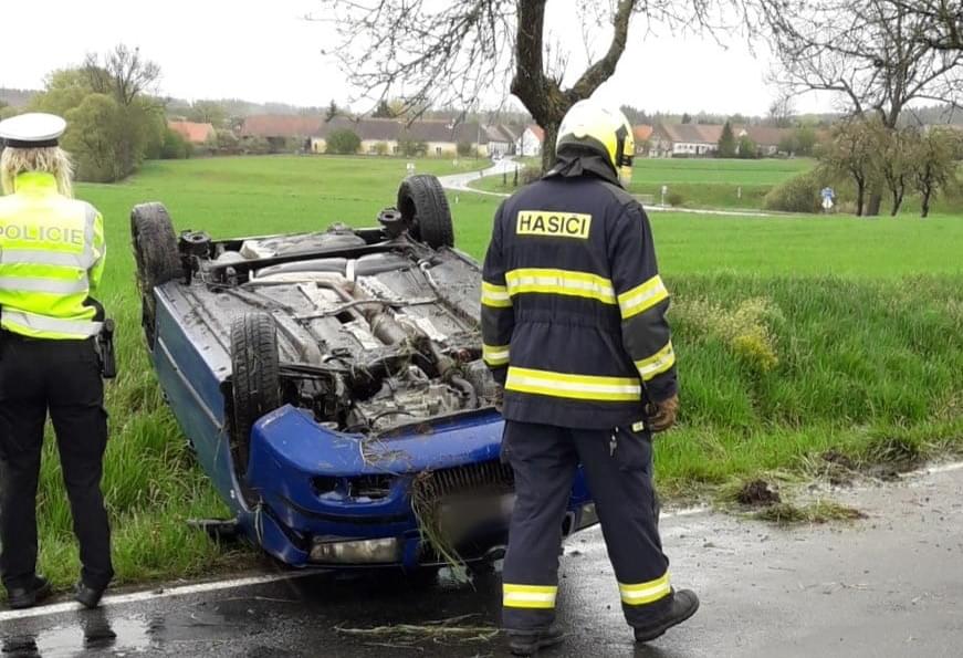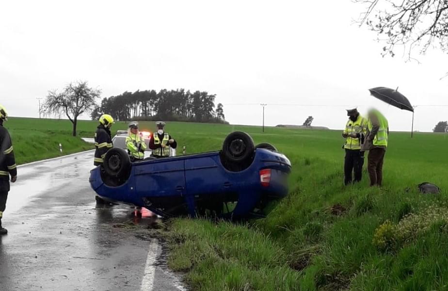 K další havárii, při které se vůz převrátil došlo krátce po poledni u Svéradic. Tato havárie se naštěstí obešla bez zranění a policisté jí ještě šetří.