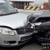 Po půl jedné došlo ke střetu dvou osobních vozů na Jateční třídě v Plzni, i zde zasahují všechny záchranné složky.