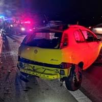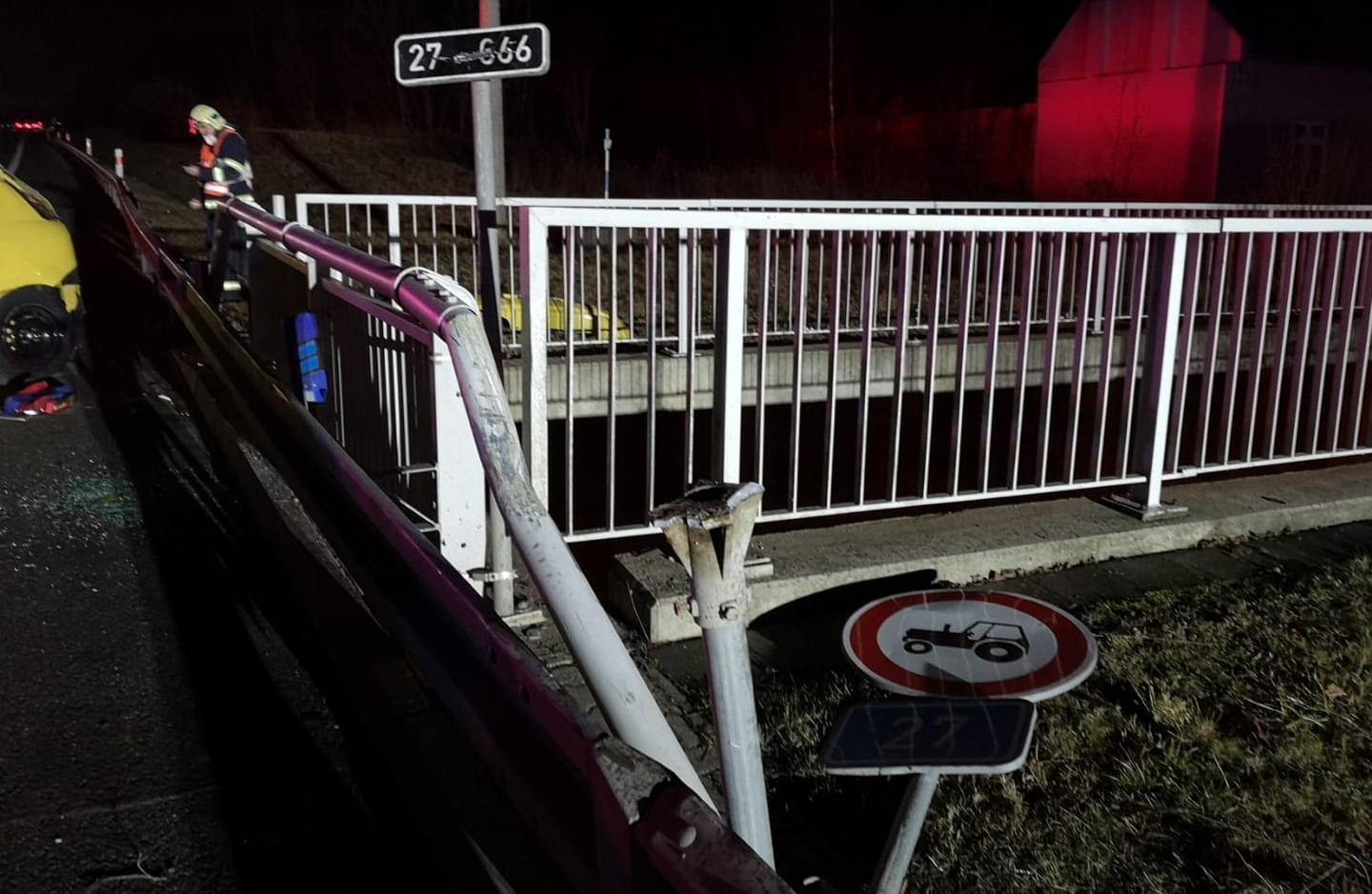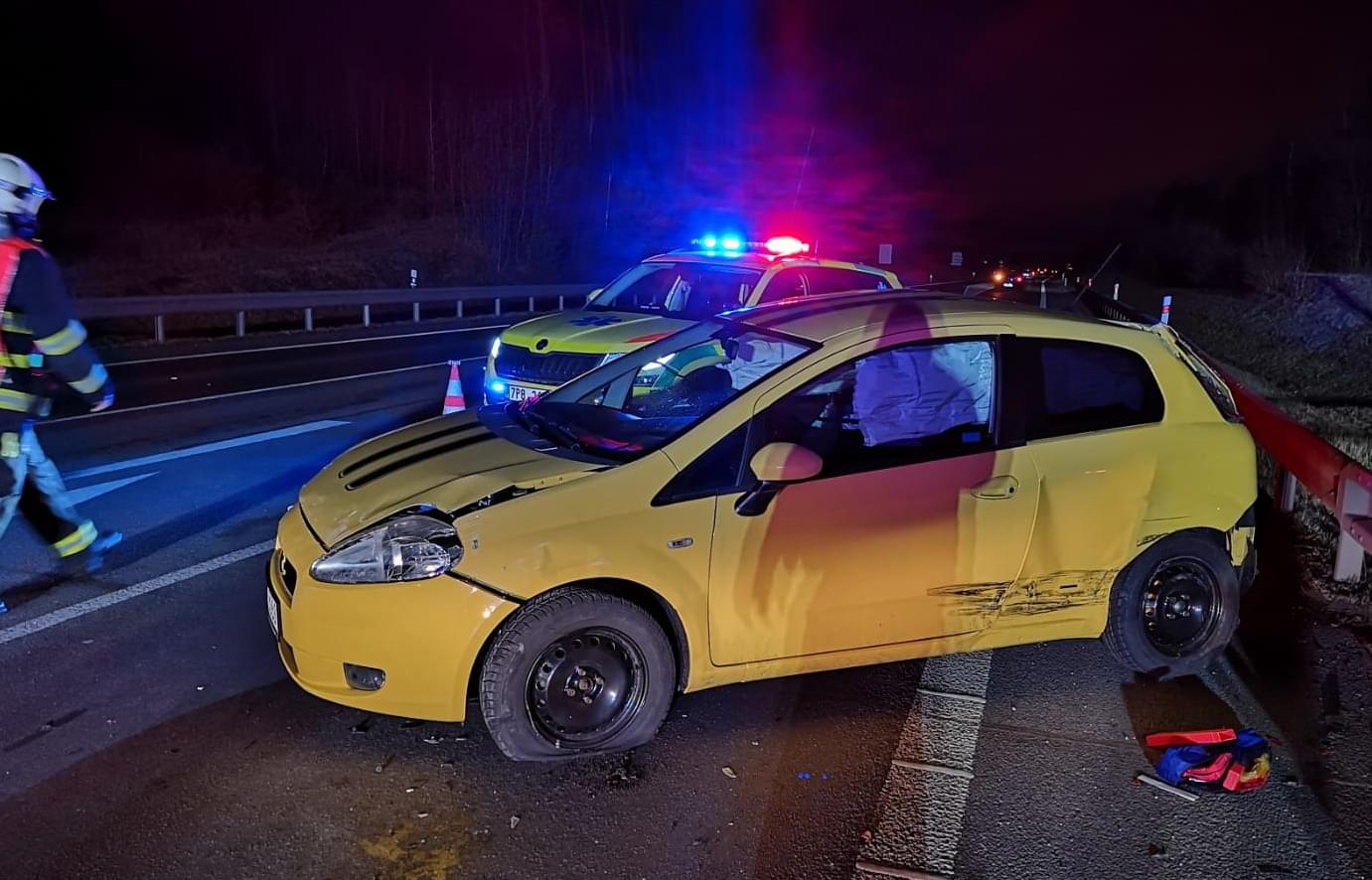 Náraz Fiat odmrštil na svodidla, na která najel a pokračoval po nich asi deset metrů, než narazil do značky a spadl zpět na silnici.