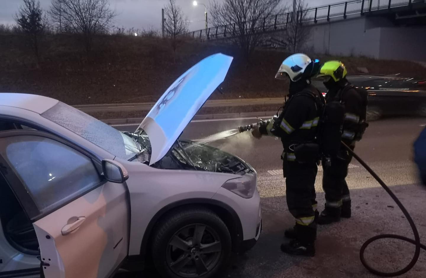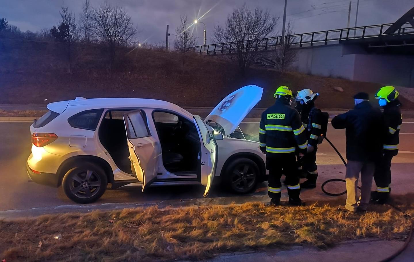 Následoval požár osobního vozu BMW, který začal v Plzni na Borech pod věznicí hořet za jízdy. Starší řidič dokázal zastavit a z vozu se dostat bez zranění. Hasiči dorazili na místo a požár, který vznikl motorové části, uhasili. Jako pravděpodobnou příčinu vzniku ohně označili technickou závadu.