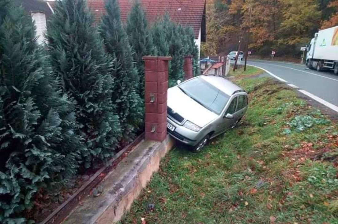 "Devětašedesátiletý muž z obce na Přešticku jel ve směru od Švihova na Klatovy. V obci Kokšín nepřizpůsobil rychlost jízdy stavu komunikace, dostal s vozidlem smyk a vyjel vpravo mimo komunikaci, kde poškodil oplocení u dvou domů," uvedla mluvčí policie.