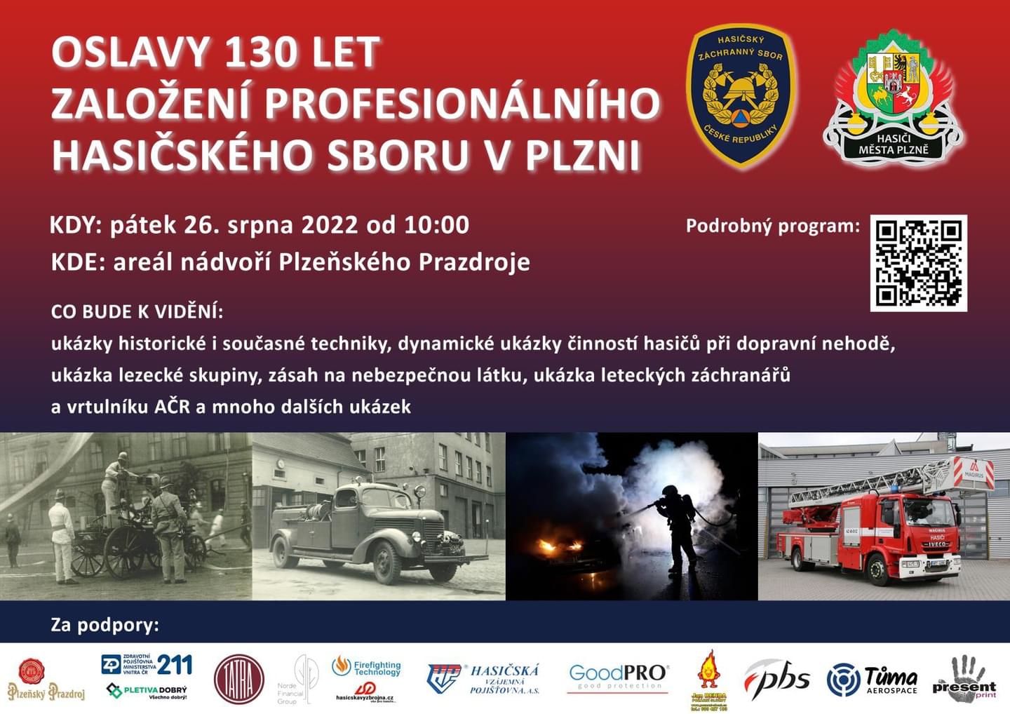"Tak se přijďte podívat, kam jsme se za těch sto třicet let posunuli! Uvidíte naši současnou i historickou techniku, děti si mohou zařádit na skákacím hradu a dospělí ochutnat výborné pivo. A všichni dohromady můžete shlédnout ukázky naší činnosti," vzkazuje tiskový mluvčí hasičů.