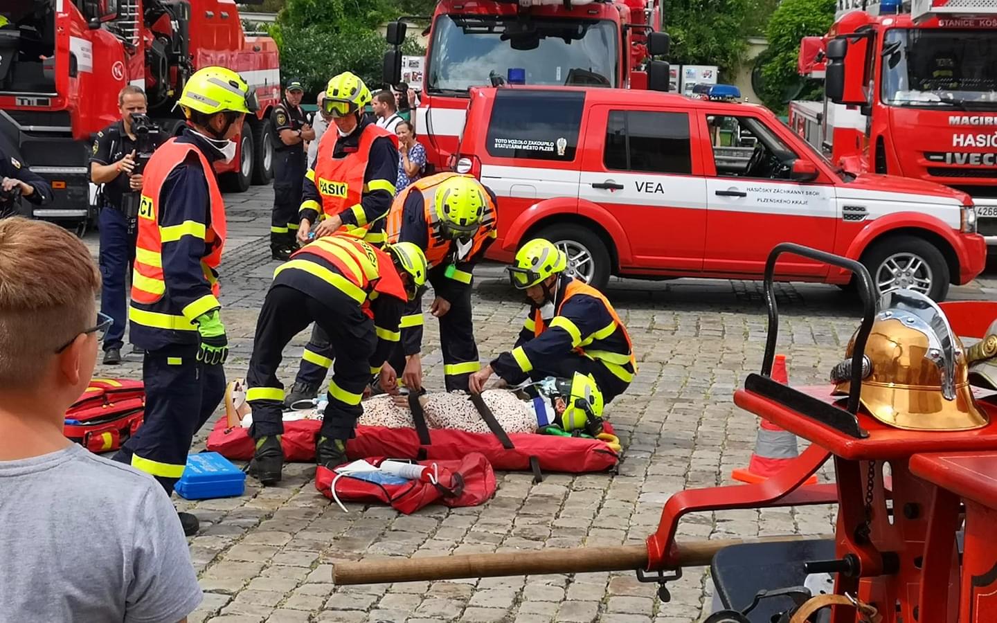 Program je v tuto chvíli v plném proudu a pro návštěvníky, kteří se plánují přijít podívat ještě v průběhu odpoledne, je krom výstavy historické i moderní techniky profesionálních i dobrovolných hasičů připraveno ještě mnoho ukázek, jako například záchrana osoby z věže pomocí vrtulníku, zásah Biohazard týmu, činnost zařízení Cobra a požární sport.