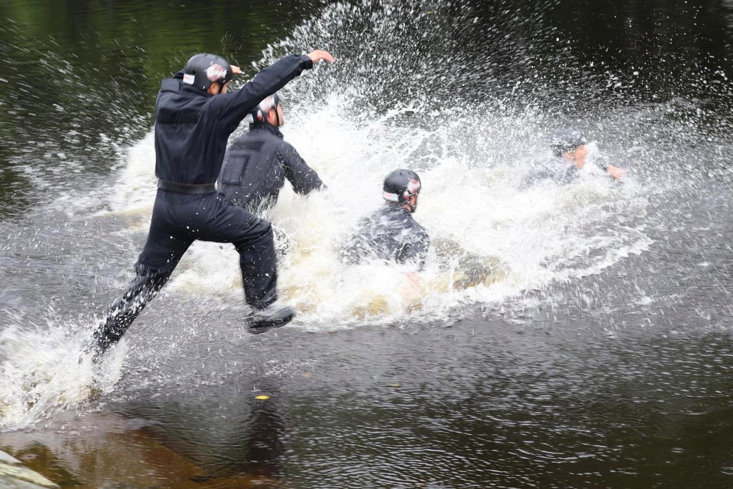 Úterý bylo zaměřeno na vodní záchranu a všechna zúčastněná družstva se tak přesunula k vodnímu kanálu České Vrbné u Českých Budějovic. K dispozici měli rafty včetně příslušenství a jednalo se zejména o nacvičování záchrany osob na vodní hladině, záchranu tonoucího a jeho přesun do záchranného člunu nebo sebezáchranu policisty při pádu do divoké vody.Cílem tohoto fyzicky náročného dne bylo ověřit souhru a koordinaci jednotlivých týmů v obtížných podmínkách.