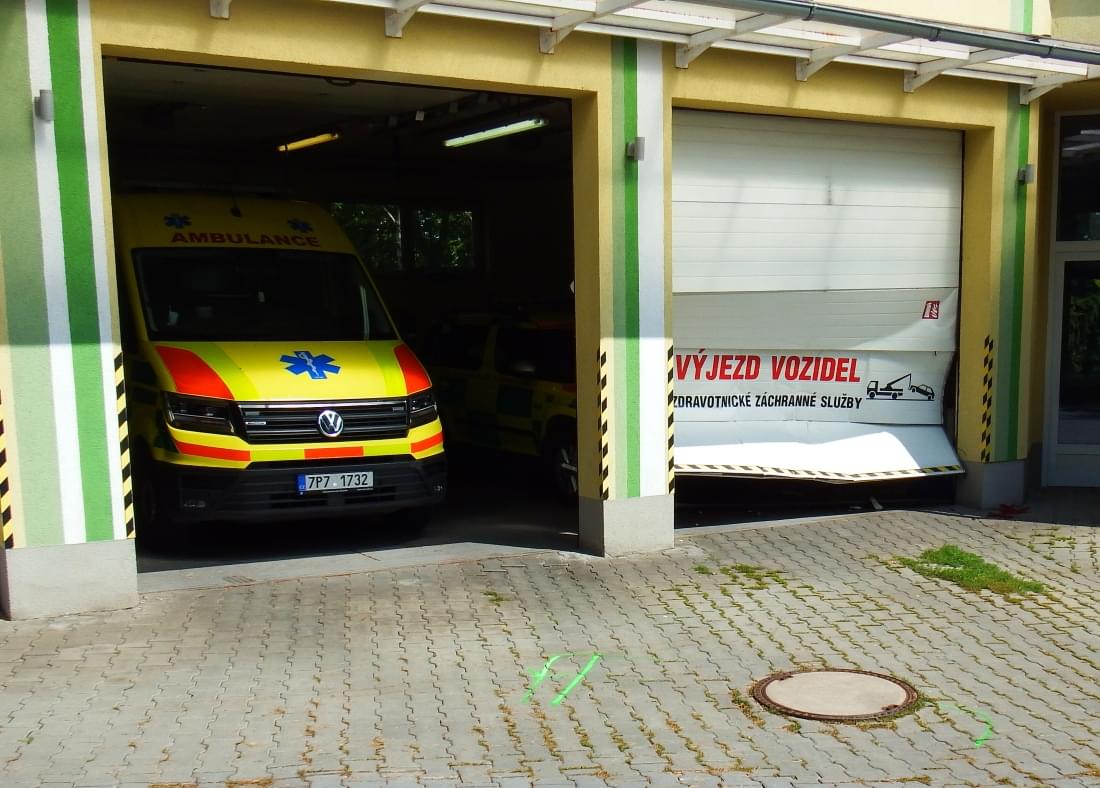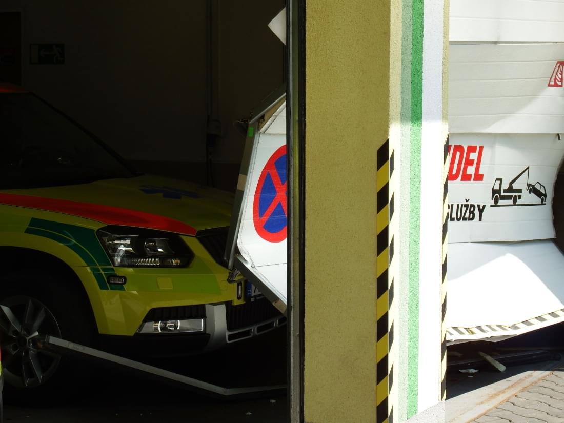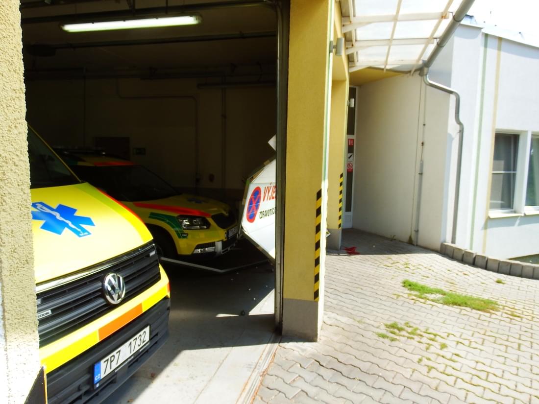 Kie se ale dle všeho "nechtělo na paničku čekat" a tak se po chvíli vydala na projížďku. Vůz, zaparkovaný přímo proti vjezdu parkoviště, pozadu vyjel z parkovacího místa a následně i z parkoviště na příjezdovou cestu k výjezdové základně ZZS. Většinou by podobná událost skončila autem zastaveným o obrubník nebo maximálně o strom. Majitelka ale dnes měla opravdu obrovskou smůlu, vůz se totiž o obrubník stočil, z mírného svahu se rozjel a prorazil dveře garáží záchranné služby. Následkem toho došlo ještě k poškození RV vozu Škoda Yeti, zaparkovaného uvnitř.