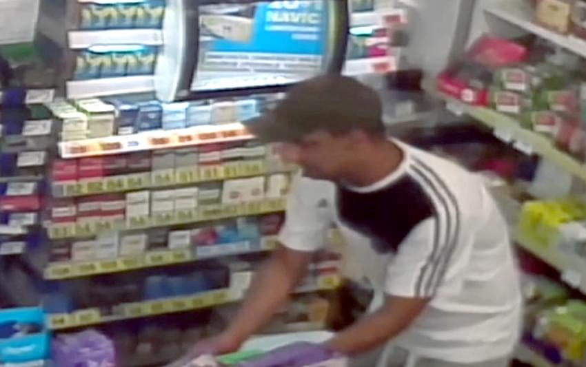 Muž si při procházení kolem dveří prodejny všiml, že prodavačka rovná zboží v jedné uličce, a že prodejní pult je tak na chvíli nehlídaný. Potichu se tedy vplížil dovnitř a začal prostor za pultem prohledávat.
