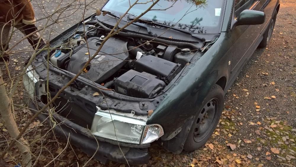 Přikládám fotky poškozených aut. Ze zelené Octavie byla odcizena přední kapota, přední nárazník a fakt prasácky, snad otvírákem na konzervu otevřený dveře.