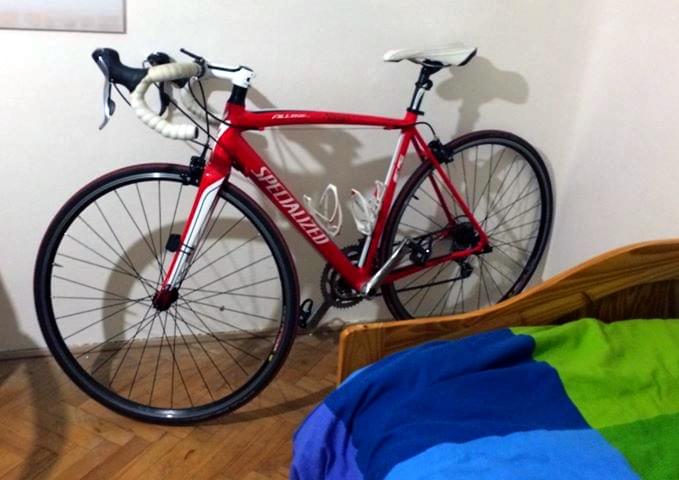 dnes mi bylo v Depu 2015 u Makerspace odcizeno červené silniční kolo Specialized Allez, s bílými omotávkami a závodními pedály Shimano 105 černé barvy.
