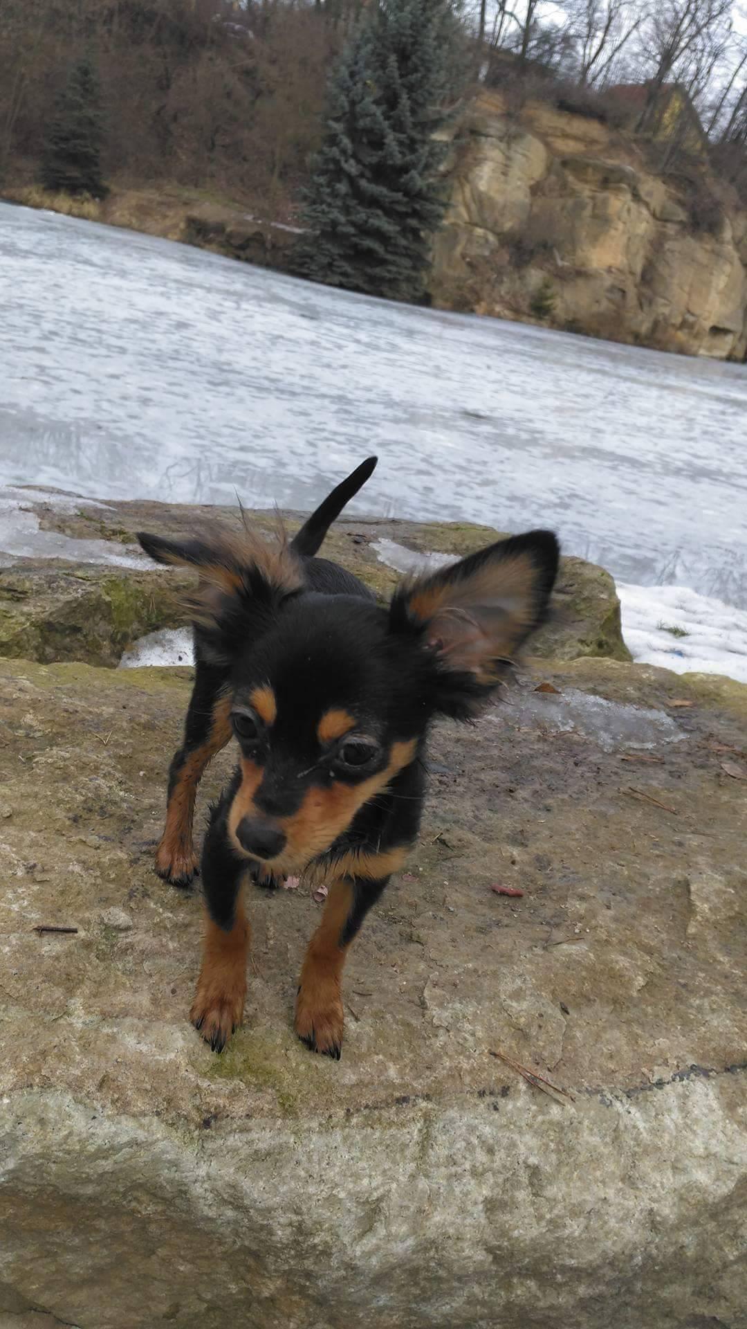 Filip se ztratil včera v deset hodin večer i s modrým obojkem a flexivodítkem na lávce v Doudlevcích. Jedná se o ani ne půlroční štěně křížence čivavy a krysaříka malého vzrůstu, vážící přibližně 2kg.