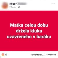 Otec Roberta na svém Fb profilu toto okomentoval velice ostře: "Matka celou dobu držela kluka doma" - k tomuto nařčení matky se policie zatím nevyjádřila a otec toto obvinění po krátké době sám stáhl a médiím vysvětlil, že mělo jít o jeho zkrat.
