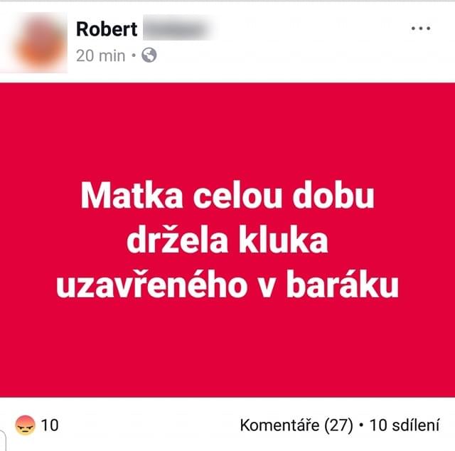 Otec Roberta na svém Fb profilu toto okomentoval velice ostře: "Matka celou dobu držela kluka doma" - k tomuto nařčení matky se policie zatím nevyjádřila a otec toto obvinění po krátké době sám stáhl a médiím vysvětlil, že mělo jít o jeho zkrat.