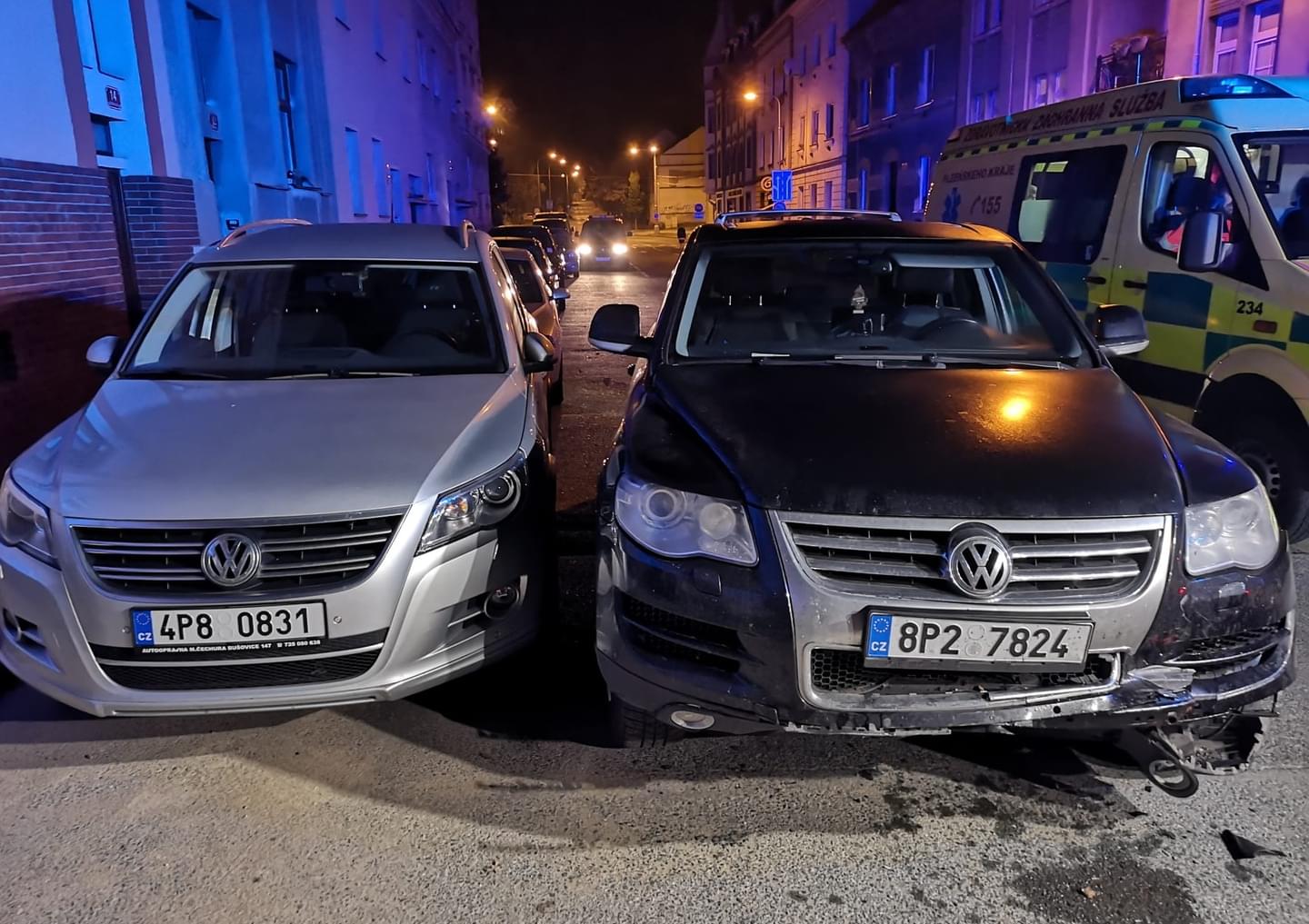 V noci na dnešek po půl jedenácté došlo v ulici Dítětova v Plzni Doubravce k dopravní nehodě, při které vůz Opel Astra naboural do zaparkovaného vozu Volkswagen Touareg. Podle informací z místa zde mladá řidička vyjížděla z Partizánské ulice, při odbočení do Dítětovy podle svědků projela zatáčkou ve smyku, přejela do protisměru a čelně narazila do Volkswagenu zaparkovaného v druhé řadě. Ten byl navíc odmrštěn na vedle stojící Volkswagen Tiguan. Jak k nehodě došlo, nedokázala mladá řidička vysvětlit, ale podle svědků na místě si chtěla před zatáčkou přibrzdit a místo brzdy sešlápla plyn.