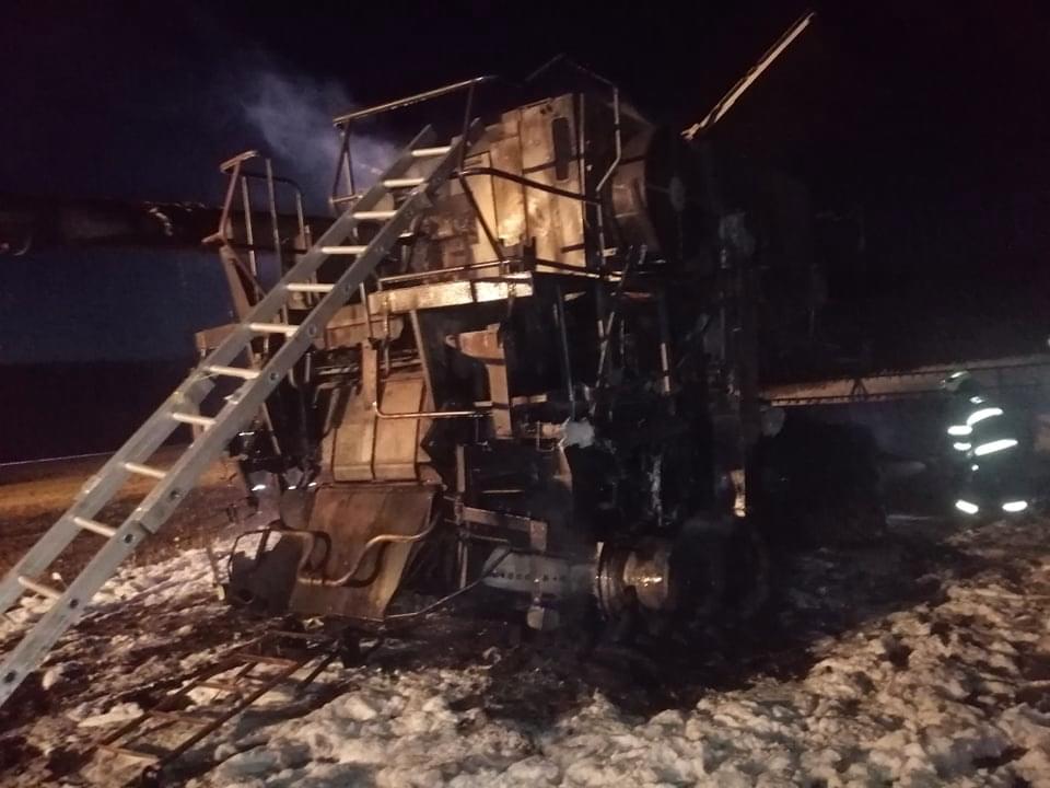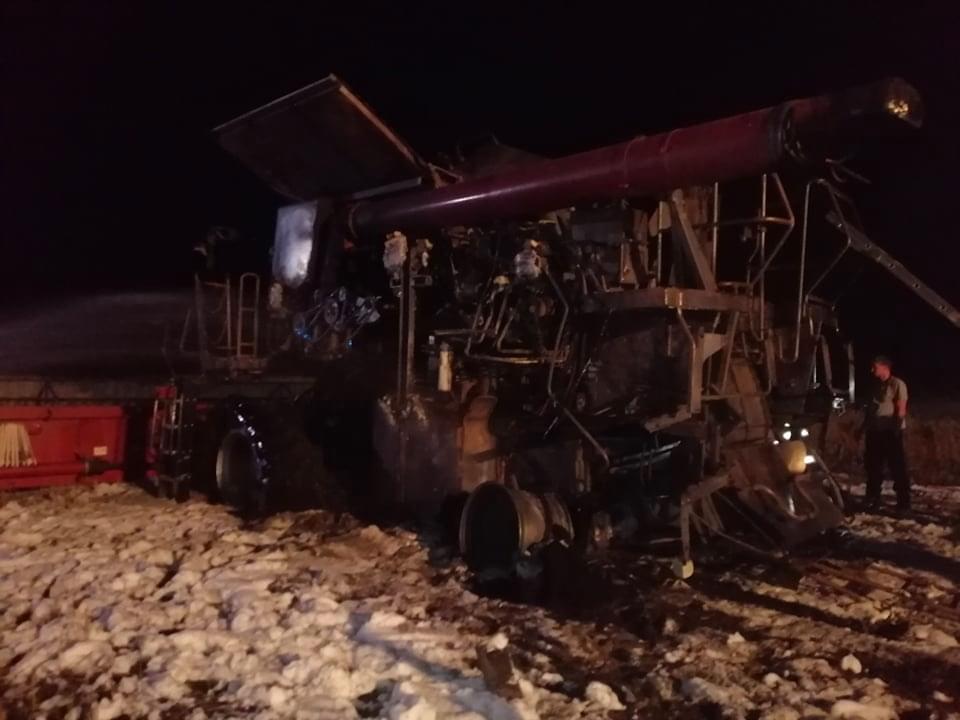 Při příjezdu hasičů byl již požár v plném rozsahu a plameny poničily celý stroj, od kterého dále zahořelo asi 100 metrů čtverečních strniště. Výše škody tak podle všeho dosáhne několika milionů korun.