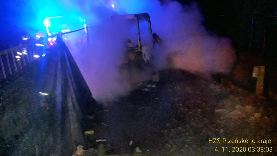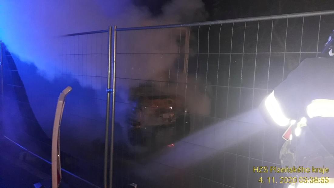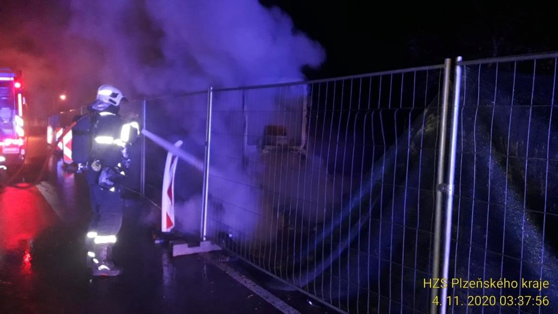 V noci na dnešek v půl čtvrté ráno vyjížděli hasiči ke Košuteckému jezírku v Plzni na probíhající stavbu opěrné stěny, kde došlo k požáru malého bagru.