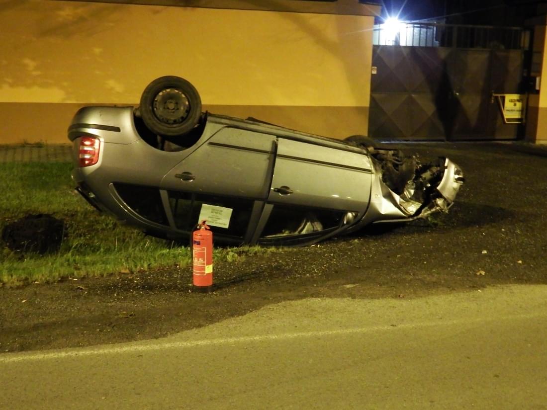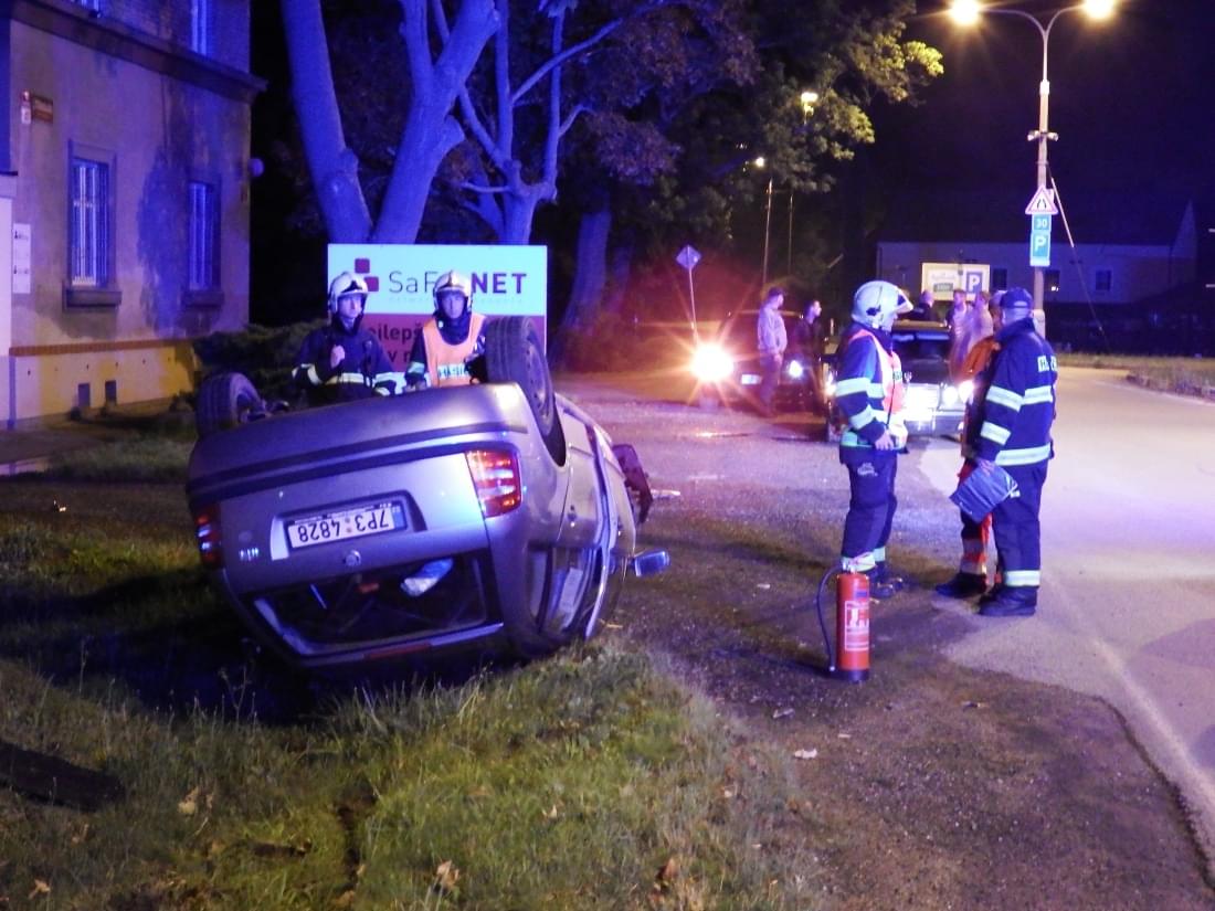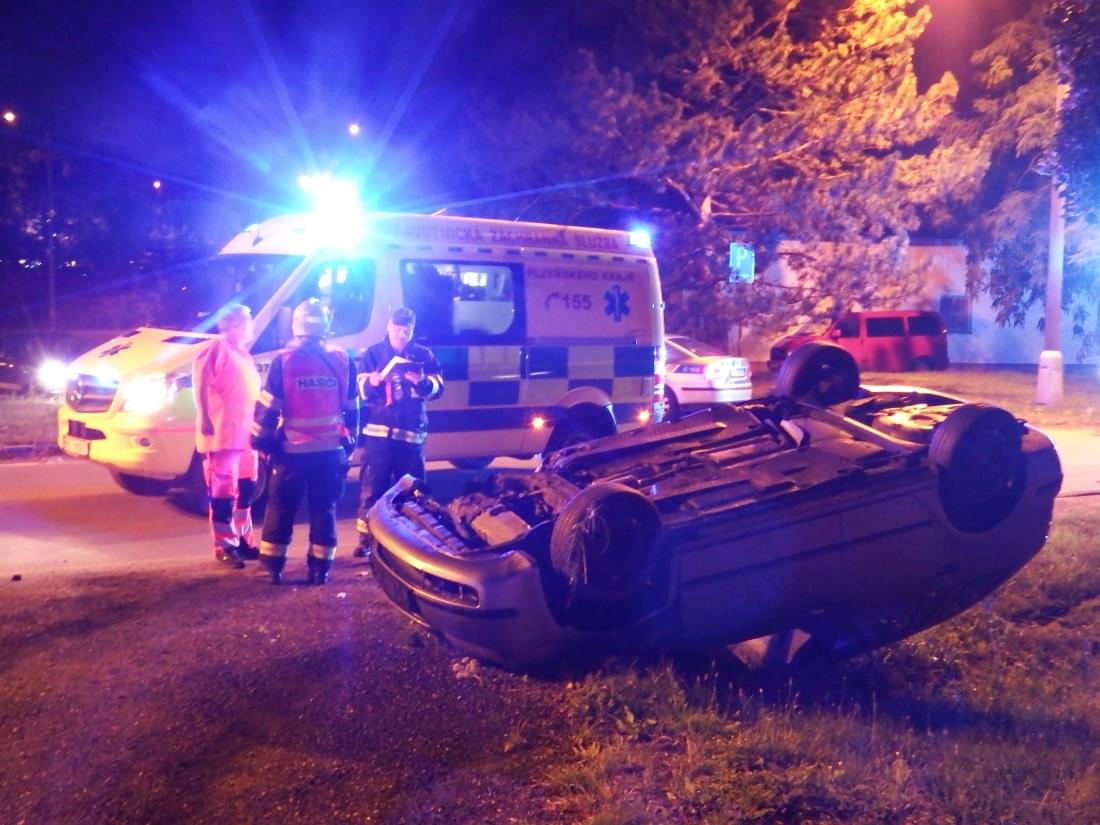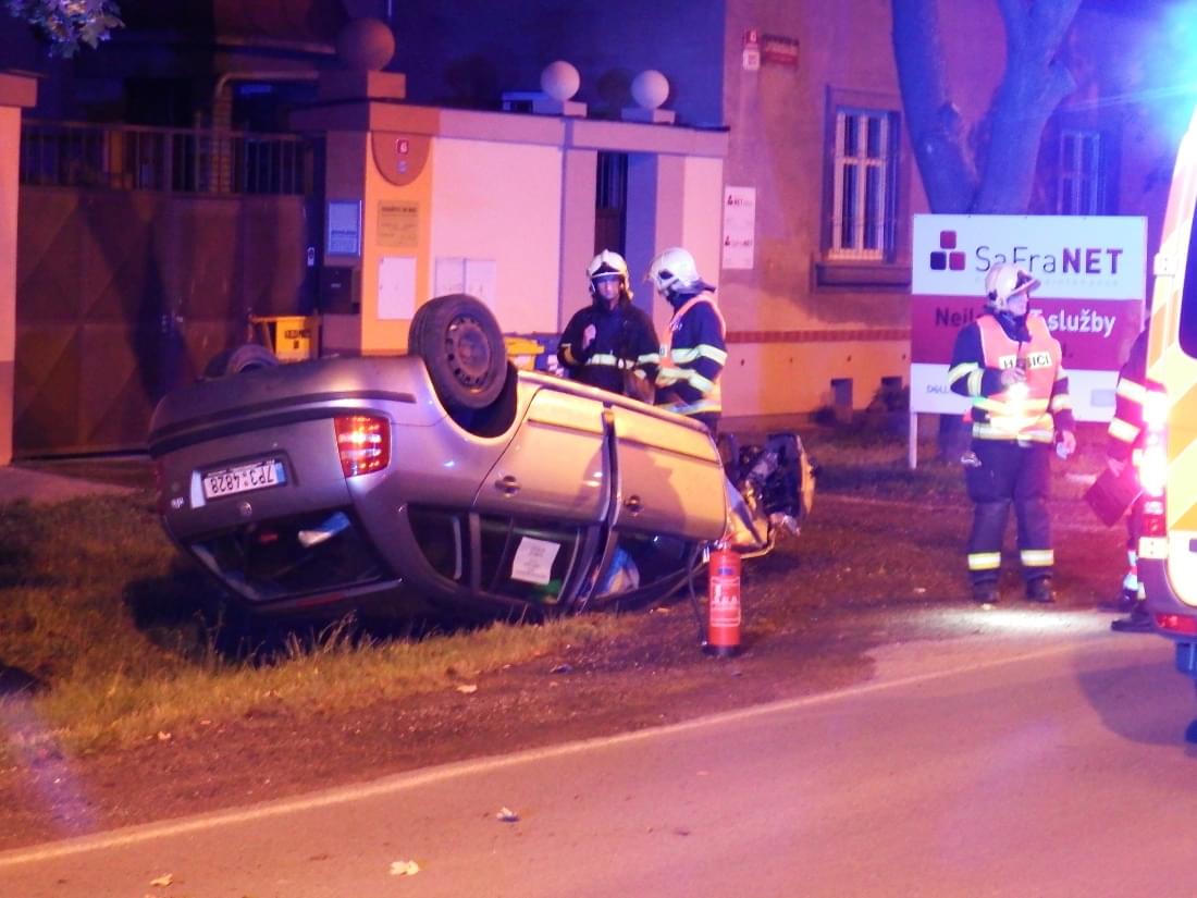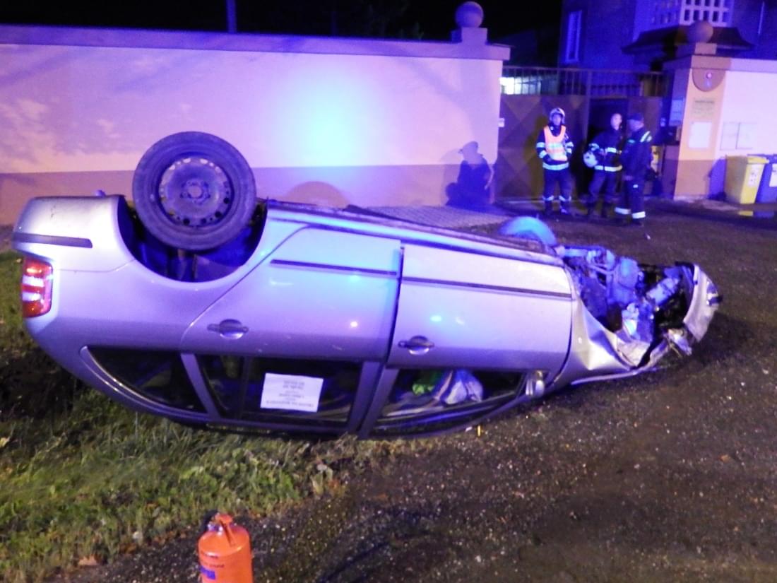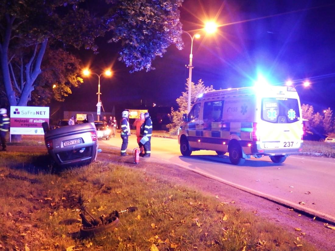 Po převrácení auta na střechu skončil mladík v nemocnici