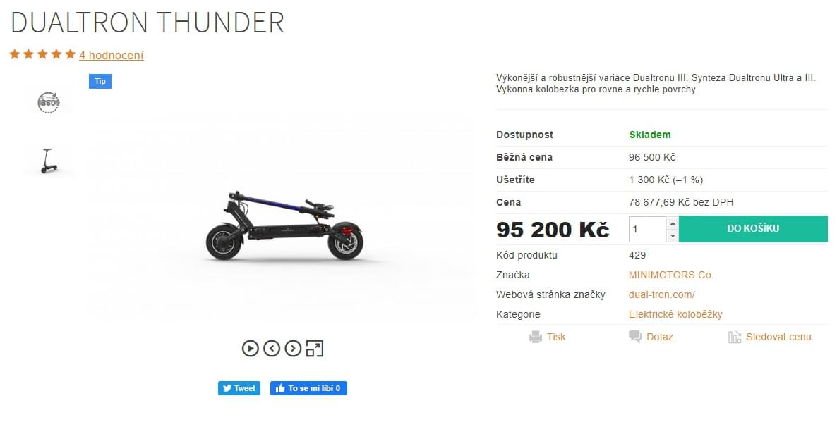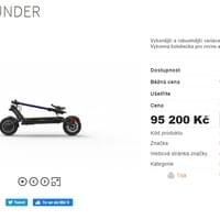 Koloběžka byla dva měsíce stará s nájezdem pouze 1300 km. Byla vybavena snímačem otisku prstu, takže na ní zloděj ani nemohl odjet a musel ji tedy odnést ručně či odvést autem. Pořizovací cena této koloběžky je přes sto tisíc korun. V Plzni snad jezdí jen jedna tato koloběžka, maximálně dvě, takže je celkem nápadná, zvlášť kvůli podsvícenému nápisu na tyči řídítek.