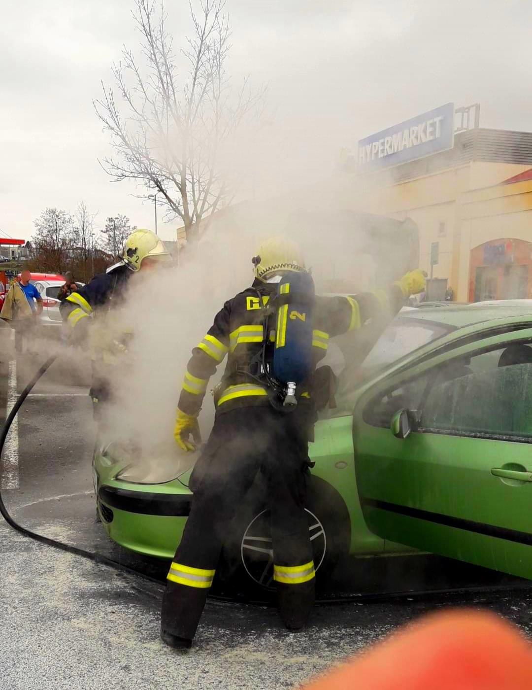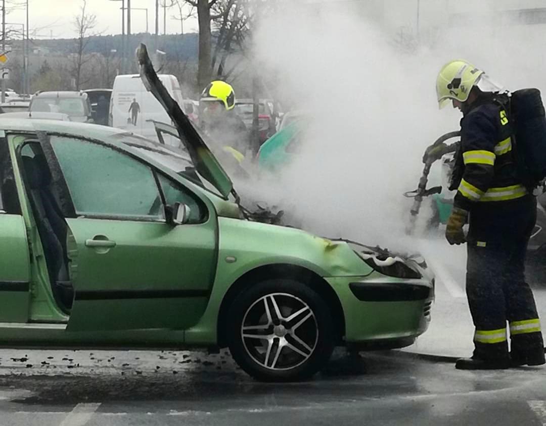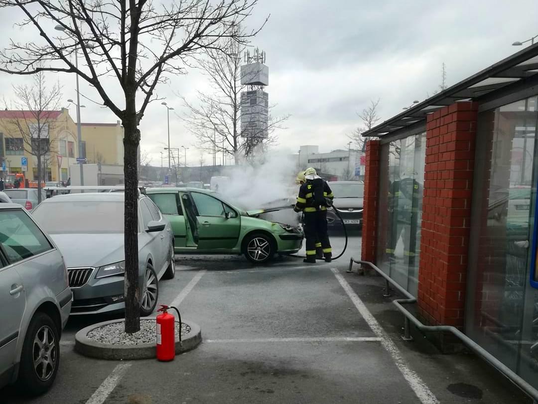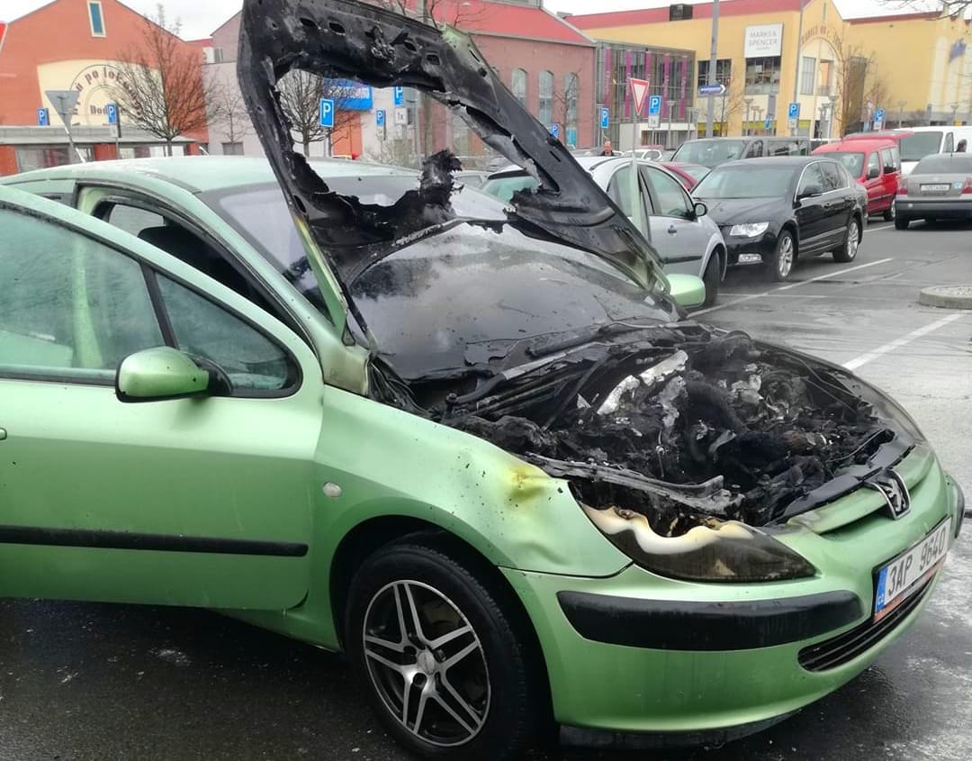 Dnes po třetí hodině odpoledne došlo na parkovišti obchodního centra Olympia v Plzni k požáru osobního vozu Peugeot.