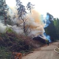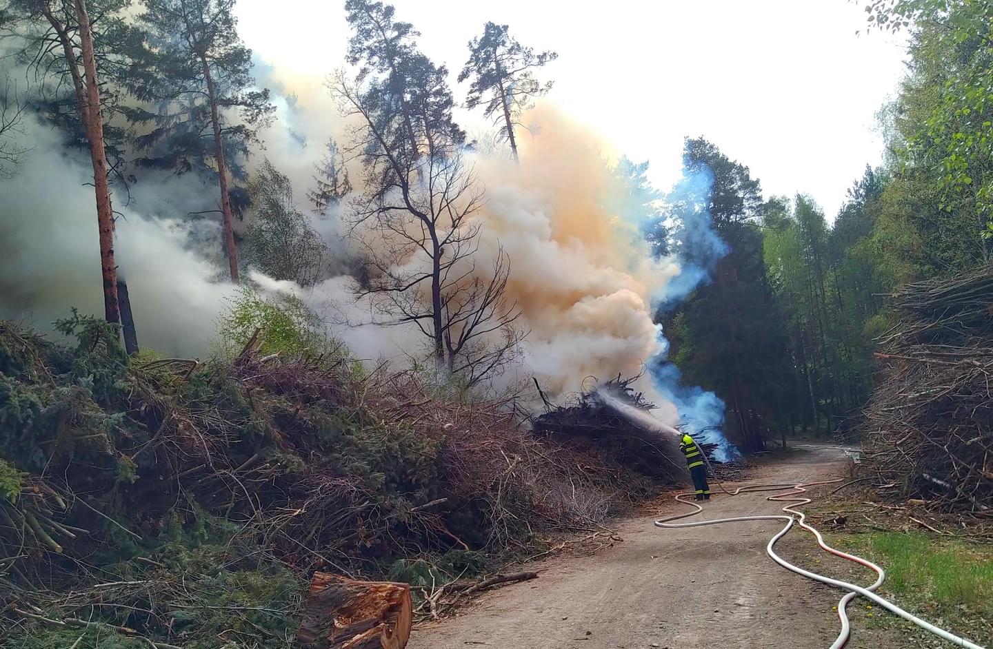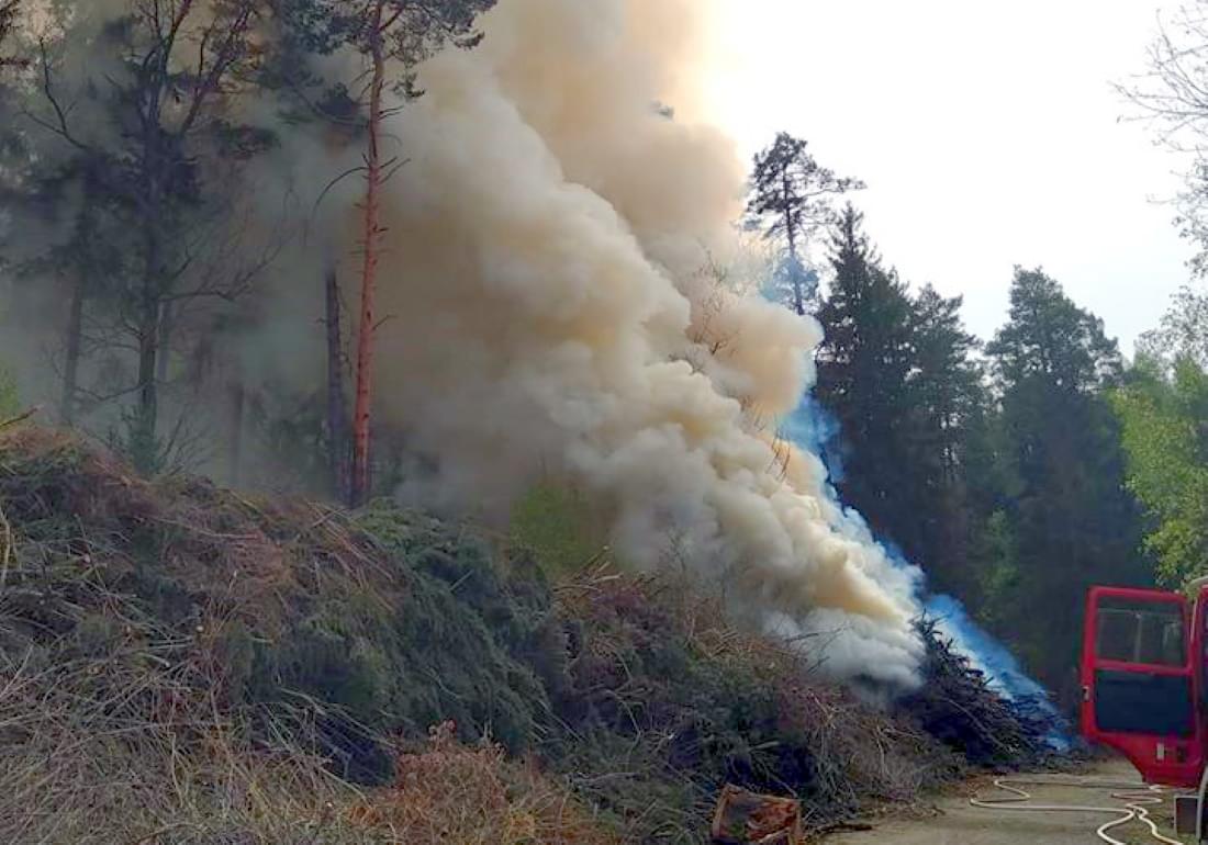 V pátek jsme informovali, že v lese nedaleko Zruče-Sence došlo k lesnímu požáru. Oheň vznikl ve veliké hromadě uskladněných větví. Tato více než dvacetimetrová hromada dřeva byla vyšší než šest metrů, takže k požáru vyjelo pět jednotek hasičů. Oheň se bohužel mezi tím rozšířil i na okolní lesní porost a celková zasažená plocha byla asi šedesát metrů.