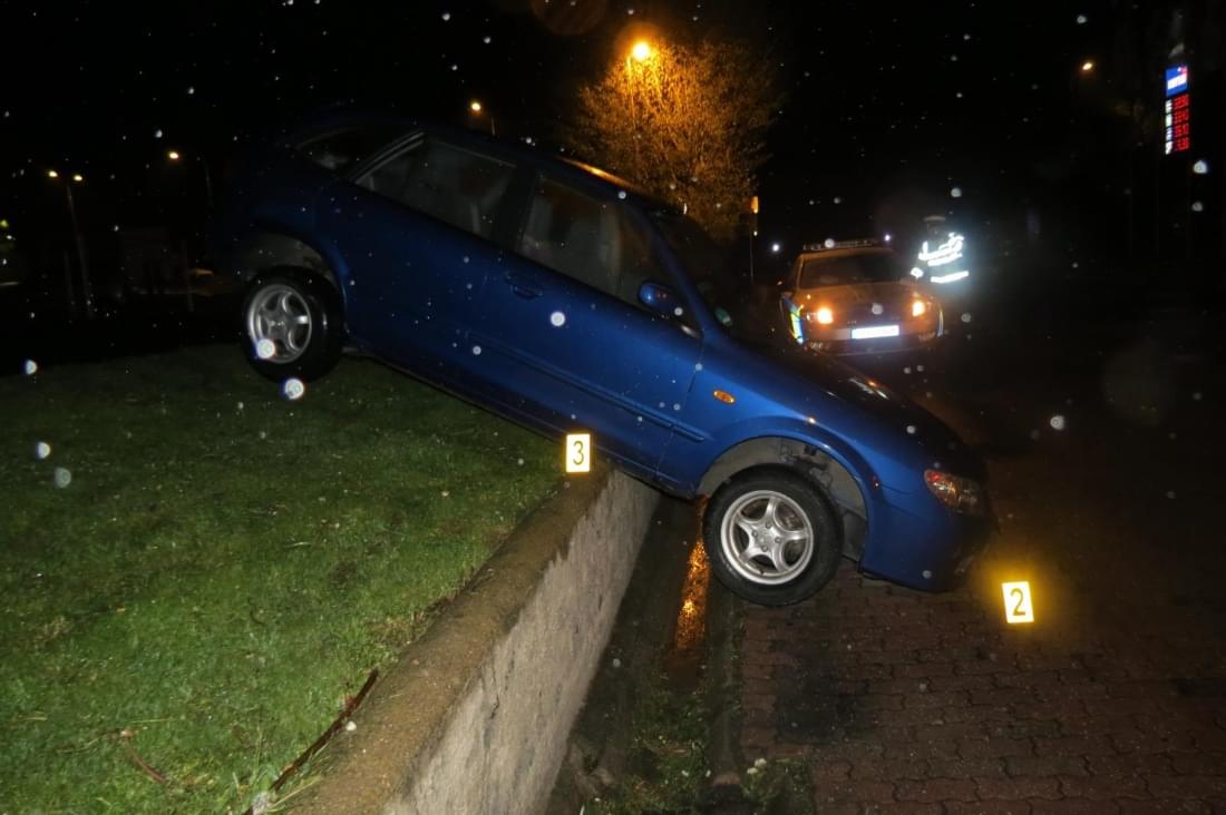 Včera těsně po druhé hodině ráno jela cizinka, podle našich informací Němka, s osobním vozem Mazda 323 po účelové komunikaci v obci Železná Ruda od ulice Javorská podél garáží hasičského záchranného sboru, když vyjela vlevo mimo silnici na travní plochu nad opěrnou zdí a přední částí vozidla sjela po opěrné zdi na plochu u čerpací stanice. Vozidlo pak zůstalo zaklíněno na hraně opěrné zdi.