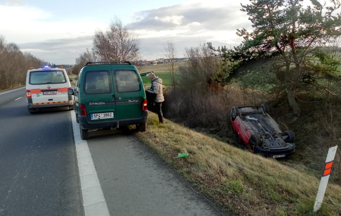 K vážné havárii osobního vozu došlo včera před půl třetí odpoledne na hlavním tahu z Plzně na Karlovy Vary mezi Úněšovem a Číhanou.