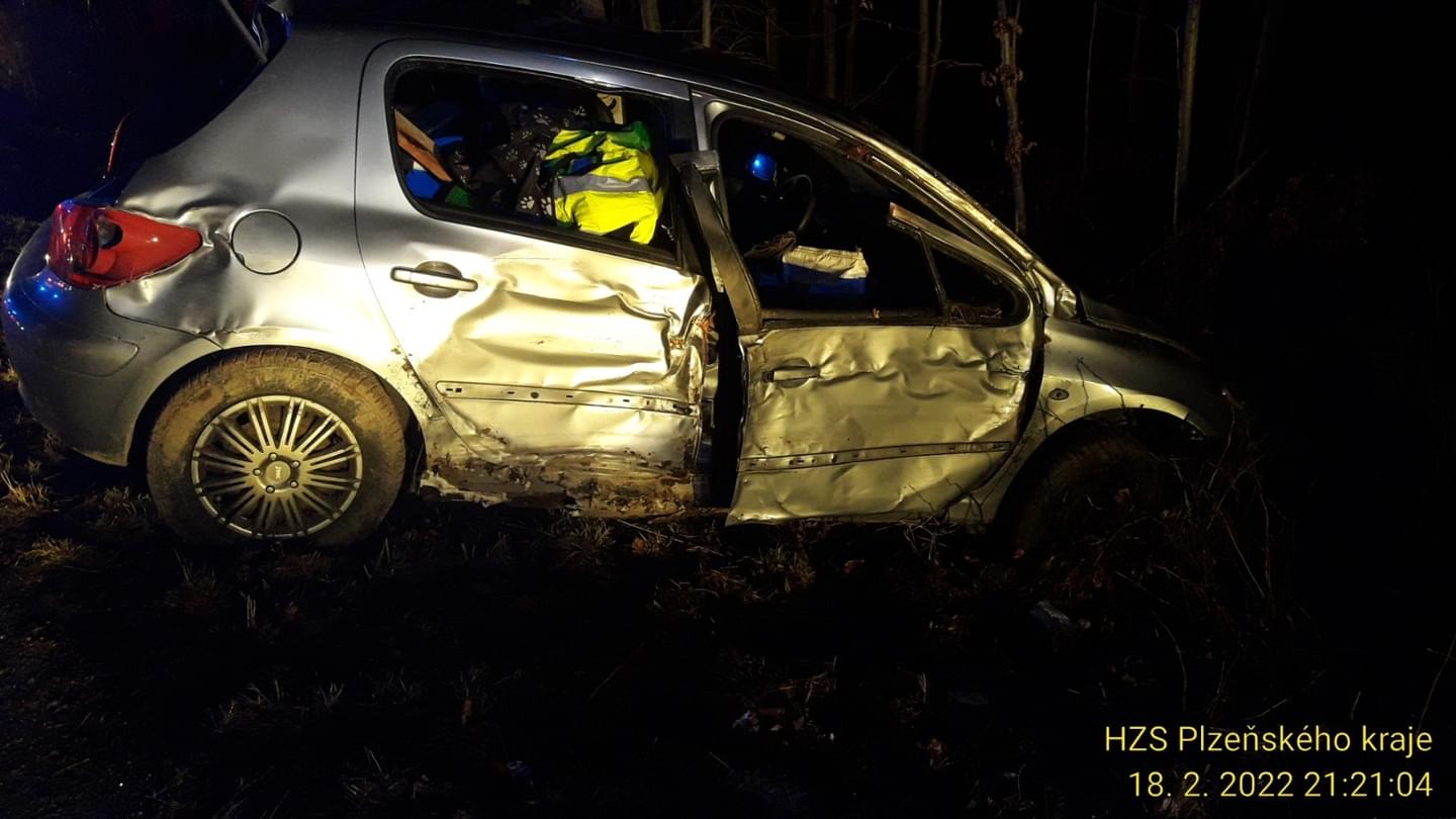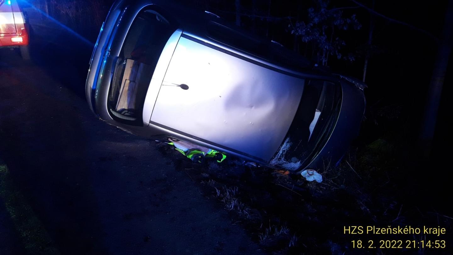 V pátek 18. února před devátou hodinou večer došlo na Klatovsku k dopravní nehodě, po které zůstal v převráceném osobním voze zaklíněný řidič. "Třicetiletý muž z obce na Kolinecku jel s vozidlem Peugeot 307 po komunikaci III. třídy číslo 1714 ve směru od obce Březí na Víteň. Při průjezdu levotočivou zatáčku za obcí Březí vjel vpravo mimo vozovku, kde se vozidlo převrátilo přes střechu a zůstalo v pozici na pravém boku," popsala tisková mluvčí policie.