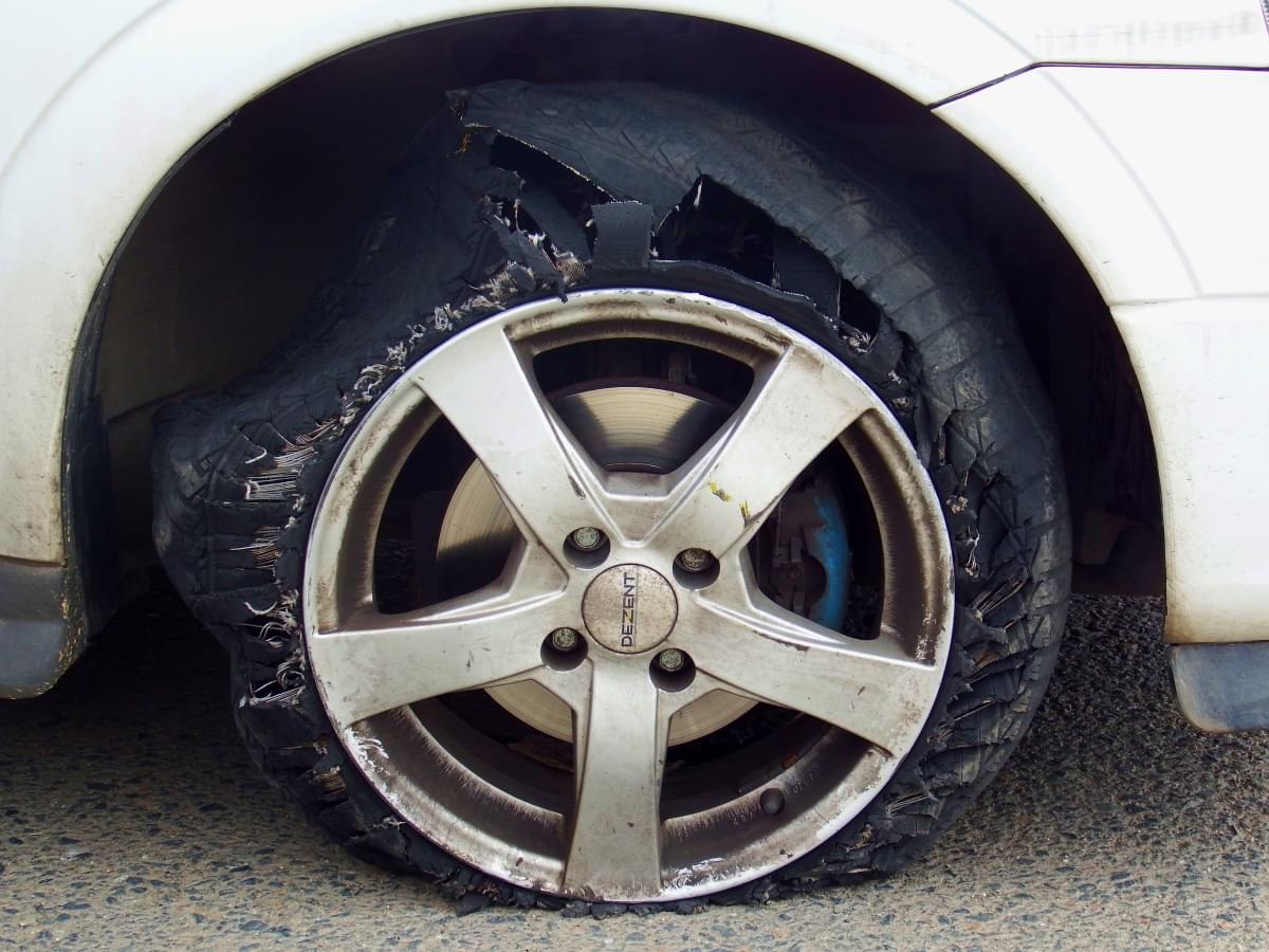auto několikrát odřel a dokonce prorazil i pravé přední kolo.