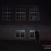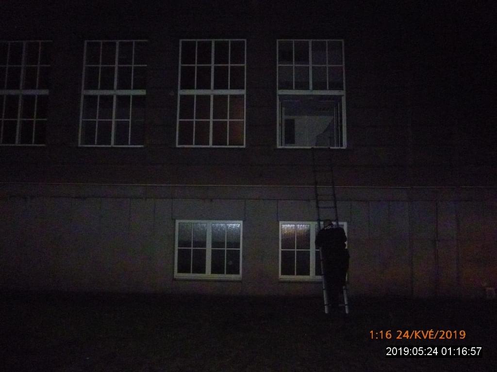Na základě signálu na pult centralizované ochrany na místo vyjela hlídka strážníků, která po příjezdu na místo nalezla rozbité okno v přízemí a otevřená okna v prvním patře. Strážníci na místo přivolali posily, aby bylo zabezpečeno okolí objektu, kdyby chtěl někdo z budovy utéct. Před jejich příjezdem strážníci v jednom z oken v posledním patře budovy zahlédli neznámého člověka, který ale na jejich výzvy, aby vyšel ven, nereagoval.