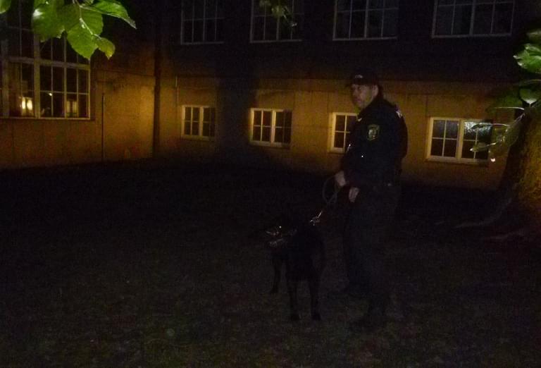 Strážníci proto s kolegy a policisty, kteří mezitím dorazili na místo, zahájili systematickou prohlídku budovy, při které byl nasazen i psovod se psem Grimem. Zanedlouho pak byli ve třetím patře objeveni a zajištěni dva mladí muži, kteří se vzdali a se strážníky spolupracovali, takže měli štěstí a nemuseli poznat Grimovy zuby.