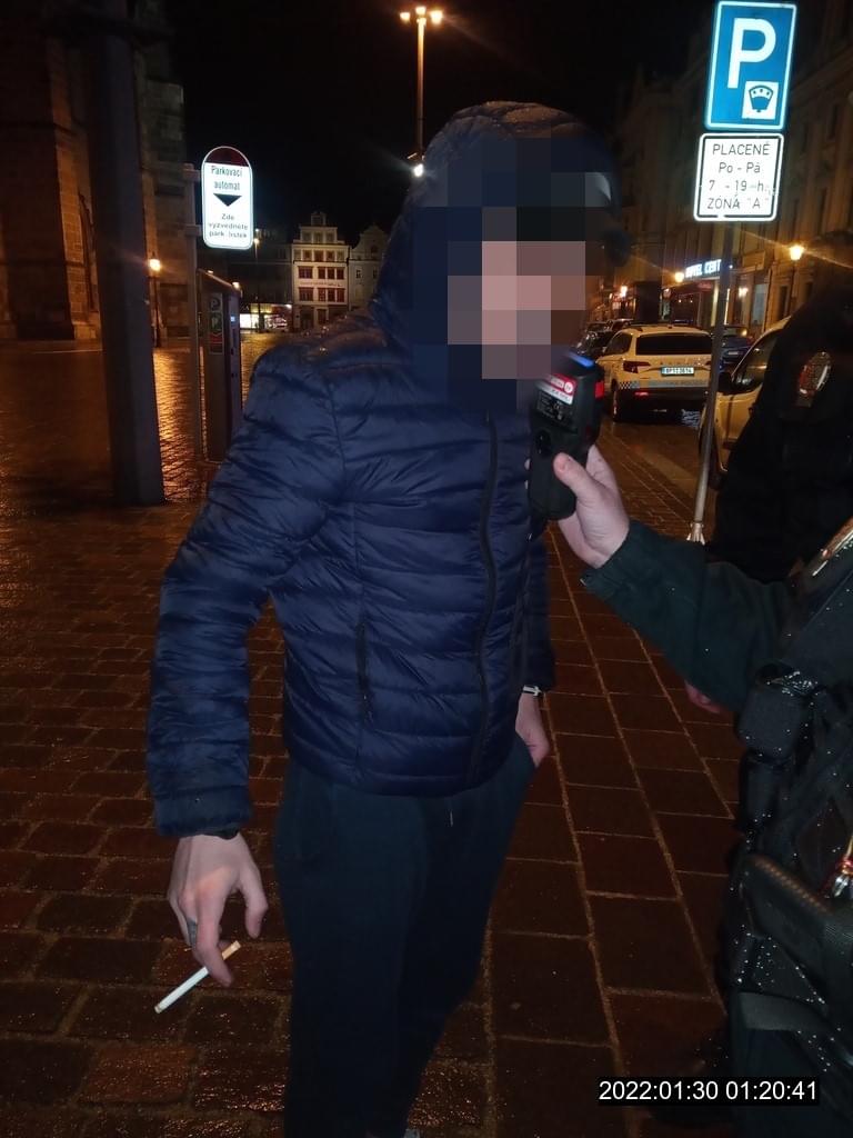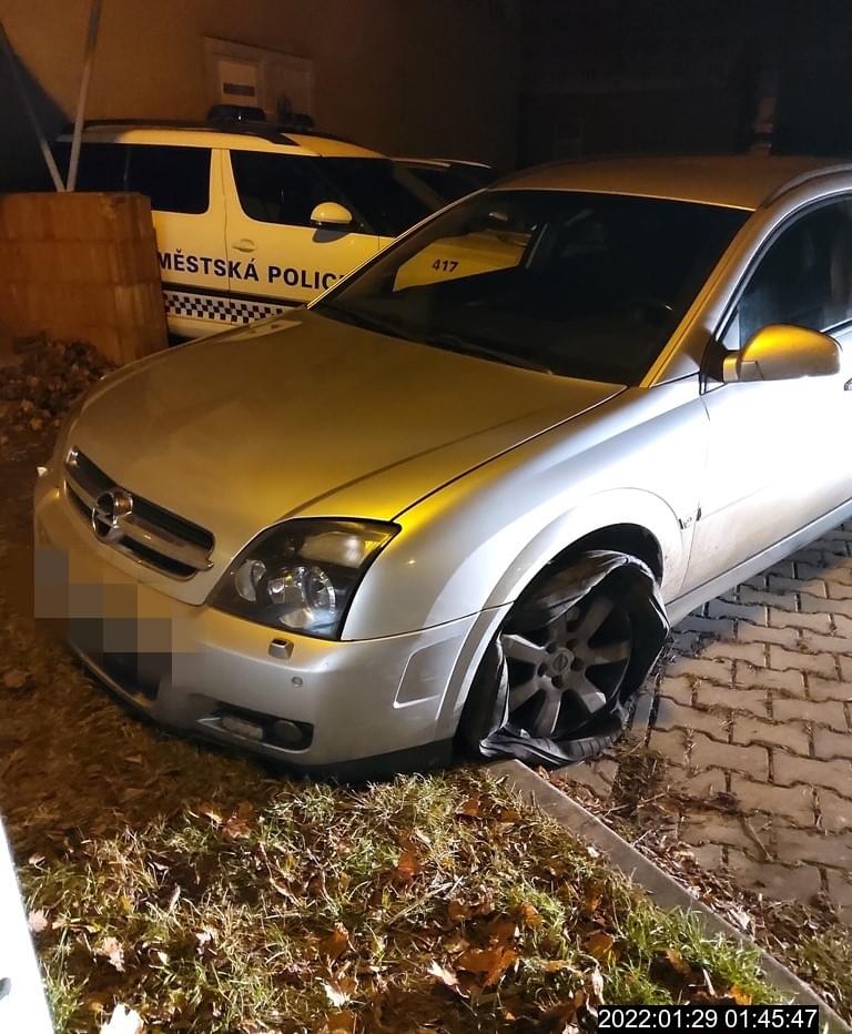 Strážníci ze služebny Městské policie Plzeň-Bory v noci z pátku na sobotu v Heyrovského ulici zastavili a kontrolovali vozidlo Opel Vectra. Řidič na sebe upozornil sám, jel totiž v autě s proraženou přední pneumatikou. Hlídce strážníků jednačtyřicetiletý Plzeňan nepředložil žádné doklady k řízení a k provozu motorového vozidla.V průběhu kontroly si strážníci všimli, že muž jeví patrné známky požití alkoholu, a proto jej vyzvali k dechové zkoušce. Té se ale muž odmítl podrobit, takže si celý případ na místě převzali policisté.