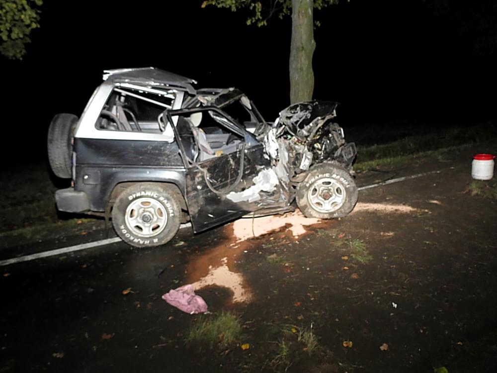Řidič vozu zde na rovném úseku v klesání vyjel vpravo mimo silnici, kde narazil do dvou stromů.
