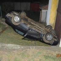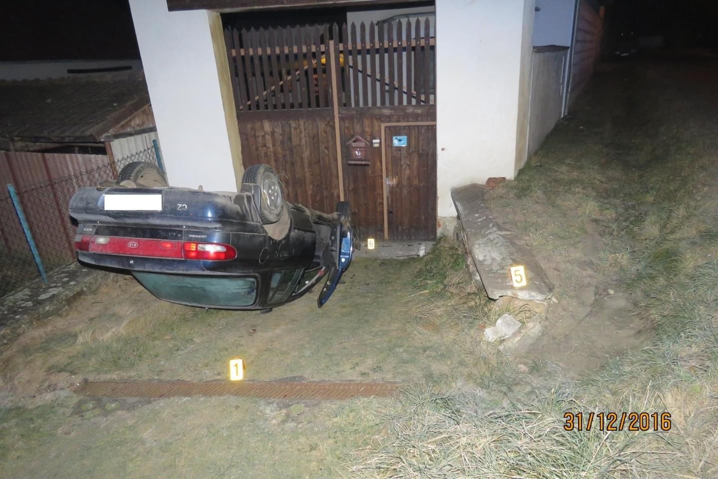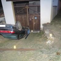 Při projíždění mírné a přehledné pravotočivé zatáčky však řidič nepřizpůsobil rychlost jízdy a vjel do protisměru. Dostal s vozidlem smyk, sjel mimo komunikaci a narazil do betonové zdi domu. Vozidlo se po nárazu převrátilo na střechu a zůstalo před vjezdem do dvora domu.