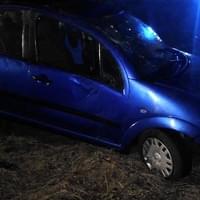 na Plzeň, nezvládl řízení a vyjel mimo komunikaci, kde se vůz převrátil