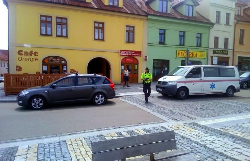 Dnes odpoledne došlo ve Stříbře na Masarykově náměstí k dopravní nehodě. Řidič vozu Kia najel do křižovatky s Plzeňskou ulicí, kterou právě na náměstí vjížděl autobus a řidič Kia mu vjezd částečně blokoval. Když si to muž za volantem osobního vozu uvědomil, couvl, ale zapomněl se podívat za sebe a narazil tak do za ním stojící převozové sanitky.