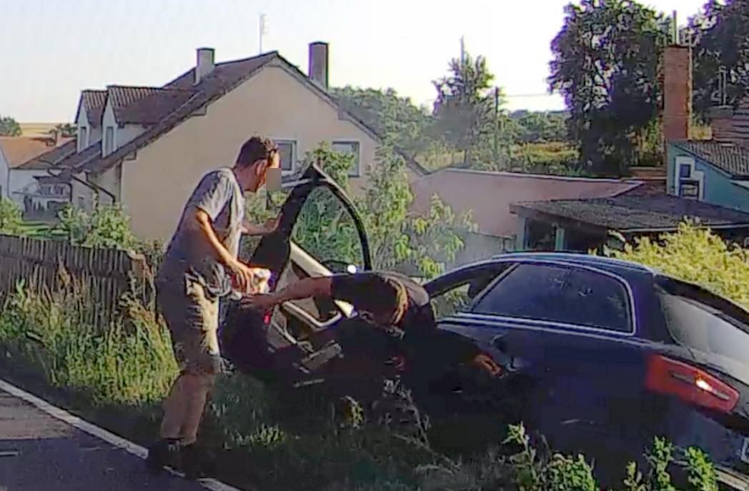 Těsně poté kolem projížděli policisté, kteří zajistili posádku vozu Audi, jednalo se o tři muže a všechny podrobili dechové zkoušce na přítomnost alkoholu, která u řidiče ukázala 2,04 promile alkoholu. Ve vozidle mimo řidiče - cizince cestovali ještě dva muži, cizinec a Čech, jeden nadýchal 2,76 a druhý 3,10 promile. Cizinec, který řídil, byl bez dokladů a chvíli tvrdil, že je z Ukrajiny, pak zase, že je z Rumunska.