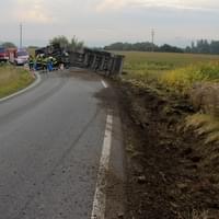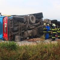 Opilý řidič vyválel náklaďák a uzavřel tak komunikaci