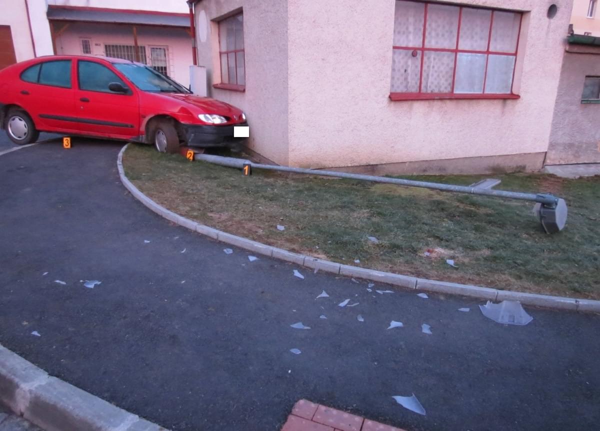 Sedmnáctiletý mladík s Renaultem Megane vyjížděl z parkovacího místa při levém okraji místní komunikace a nezvládl řízení. Přejel přes obrubník, přes chodník a na travnaté ploše narazil do sloupu veřejného osvětlení, který porazil a poškodil.