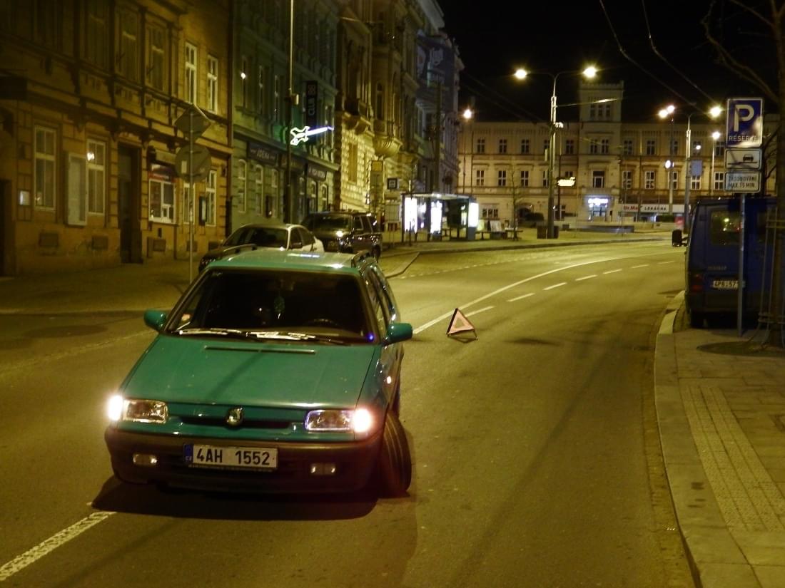 Ten se dle svého vyjádření pokusil při jízdě směrem k Tylově na Americké třídě v úrovni ulice V Šipce s vozidlem otočit, při tom najel na obrubník a vylomil levé přední kolo. Nepojízdná Škoda Felicia skončila na Americké v protisměru.