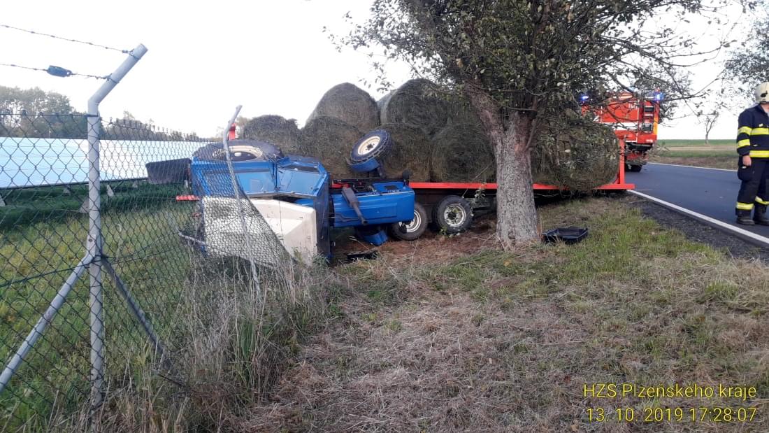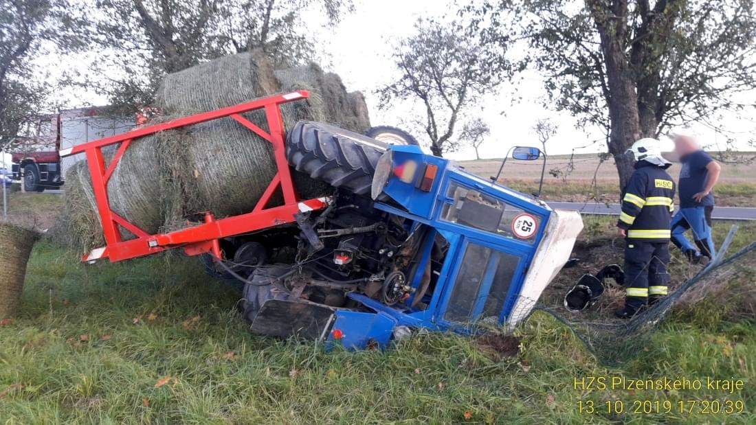V neděli 13. října jel kolem páté hodiny odpoledne starší muž po silnici od Ostřetic na Klatovy s traktorem, na kterém převážel seno.