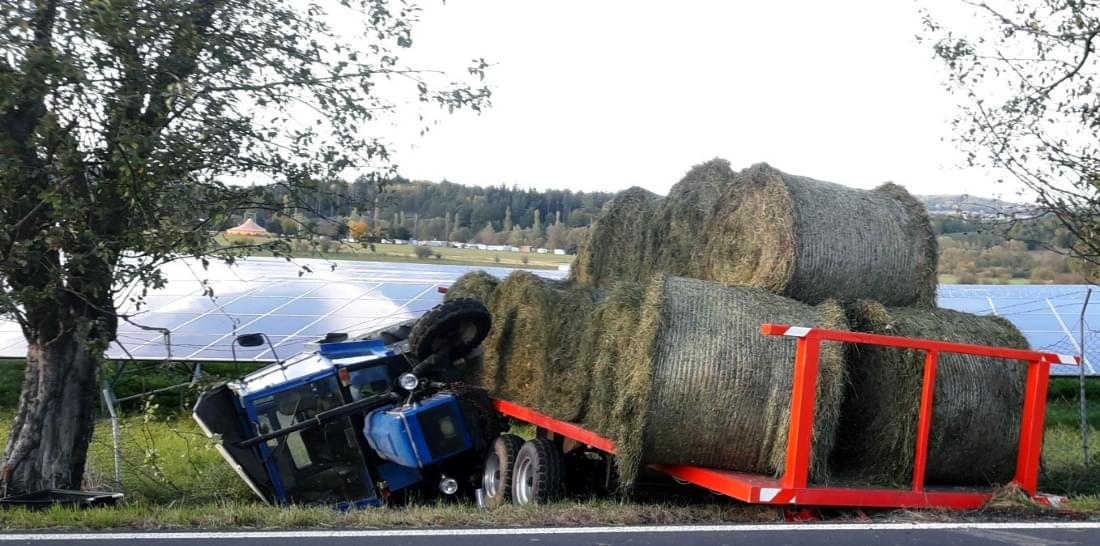Řidič popsal, že se mu u křižovatky na Čertovku udělalo špatně, vyjel vpravo za okraj silnice, kde se traktor Zetor i s přívěsem Otavan převrátil na bok a to rovnou do plotu fotovoltaické elektrárny.