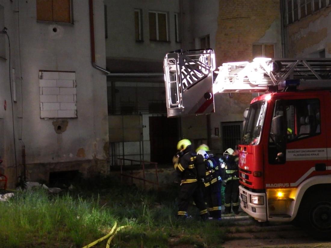 Včera po deváté hodině večer vyjíždělo několik jednotek hasičů k požáru opuštěné budovy na rohu Jateční a Doubravecké ulice v Plzni.