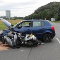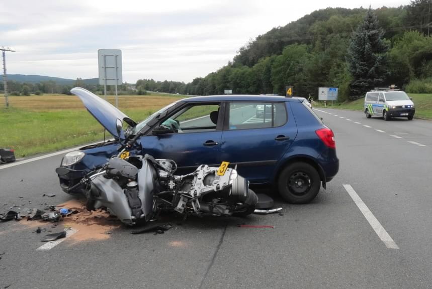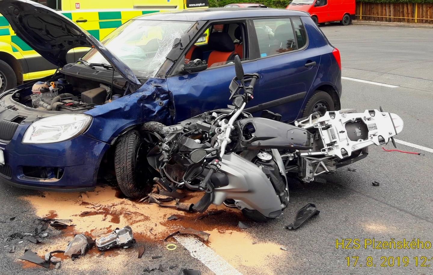 "Řidička ročník 1939 vyjížděla s osobním vozem Škoda Fabia z čerpací stanice, nedala přednost v jízdě projíždějícímu motocyklu a došlo ke střetu," popsala tisková mluvčí policie.