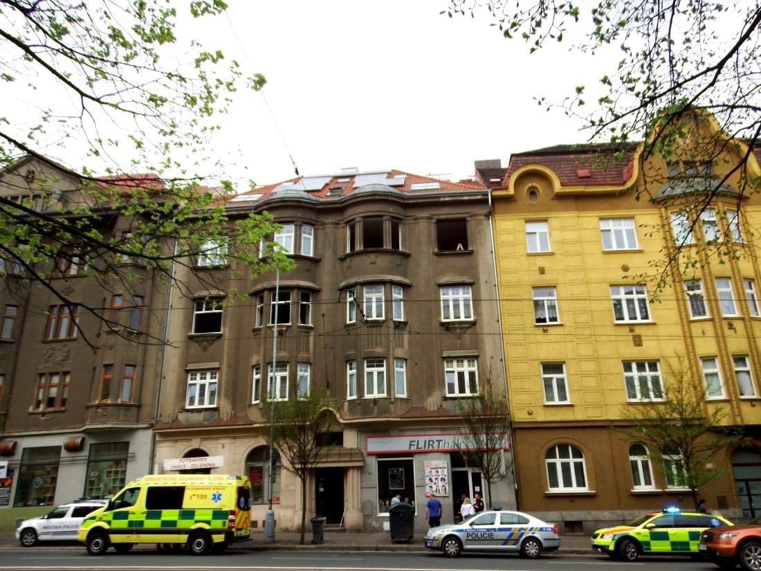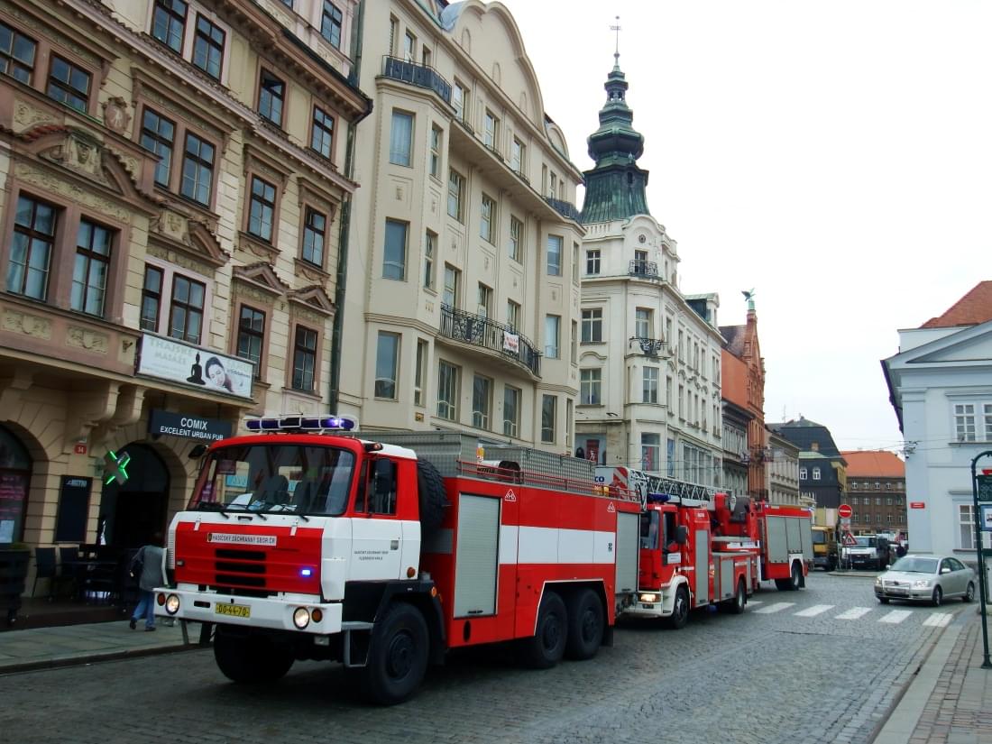 Jen o chvíli dříve zasahovali policisté a hasiči v restauraci Comix Excelent Urban bar na náměstí Republiky, kde došlo k zahoření venkovního plynového grilu.
