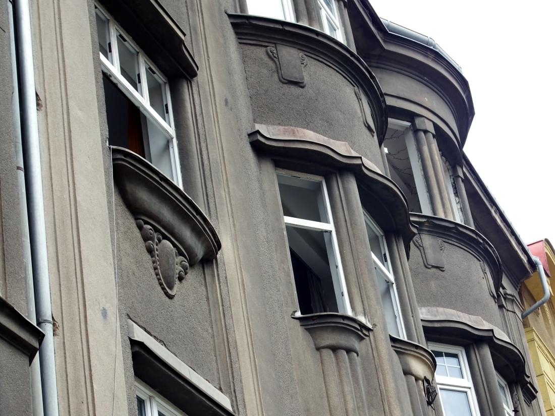 O obrovském štěstí může mluvit žena, která dnes kolem desáté hodiny dopoledne procházela po chodníku Klatovské třídy kolem domu číslo 86, ve kterém probíhá výměna oken.