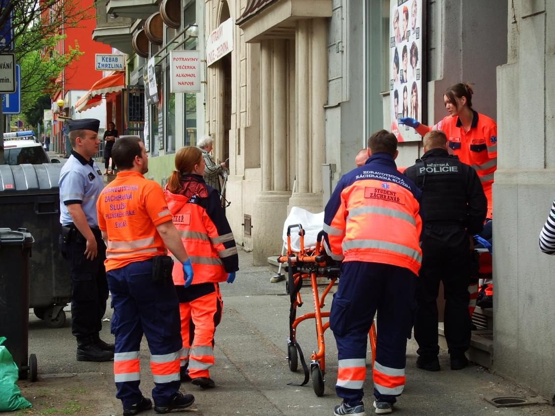 Na místo jako první dorazila hlídka městské policie, která se ženou začala řešit co se vlastně stalo, během hovoru se však ženě udělalo zle a začala zřejmě vlivem utrpěného šoku kolabovat. Strážníci ženě okamžitě poskytli první pomoc a přesunuli jí do kadeřnictví v budově, kde jí uložili a přivolali záchrannou službu.