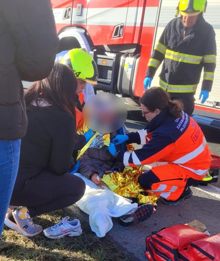 Vážně zraněné ženě zřejmě zachránil život včasný zásah pohotových svědků, mezi kterými byl i záchranář v civilu, který měl ve vozidle potřebnou výbavu. Péči o zraněnou poté převzali hasiči a nakonec si ji převzali záchranáři. "Ženu narozenou v roce 1951 jsme převzali již při vědomí a letecky ji transportovali na Emergency Fakultní nemocnice Plzeň Lochotín," uvedla nám k nehodě mluvčí záchranné služby.