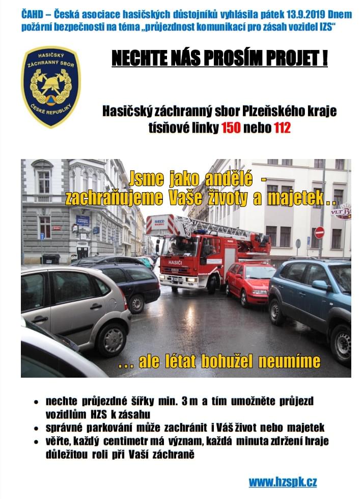 V průběhu pátečního dopoledne možná právě Vy objevíte za svým stěračem letáček, který upozorňuje na nutnost ponechání průjezdného prostoru pro techniku hasičů. Neznamená to, že zrovna vy špatně parkujete. Hasiči tak chtějí pouze upozornit, že v oblasti kde stojíte, mívají často s průjezdem potíže.