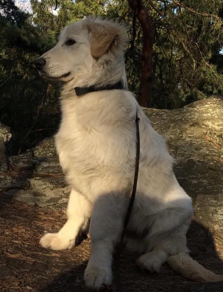 v neděli 2. dubna se nám ze zahrady ztratilo sedmiměsíční štěně. Byl to kříženec bílého ovčáka s retrívrem slyšící na jméno Falko, velice hodný a důvěřivý. Domníváme se, že pes byl ukraden, protože neutíkal, zahrada byla uzamčená a okamžitě jsme ho hledali po celých Kyšicích.