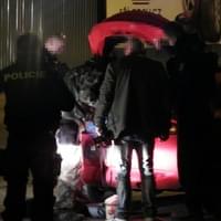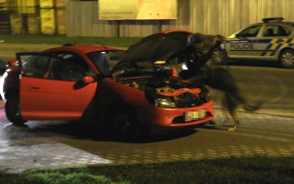 Na autentických fotkách z místa policejního zákroku můžete vidět policejního specialistu se psem na vyhledávání drog. Jak pracuje takový pes, to si přečtěte v článku: Když najdu drogu, štěkám a hrabu. Když najdu výbušninu, sednu si a mlčím!